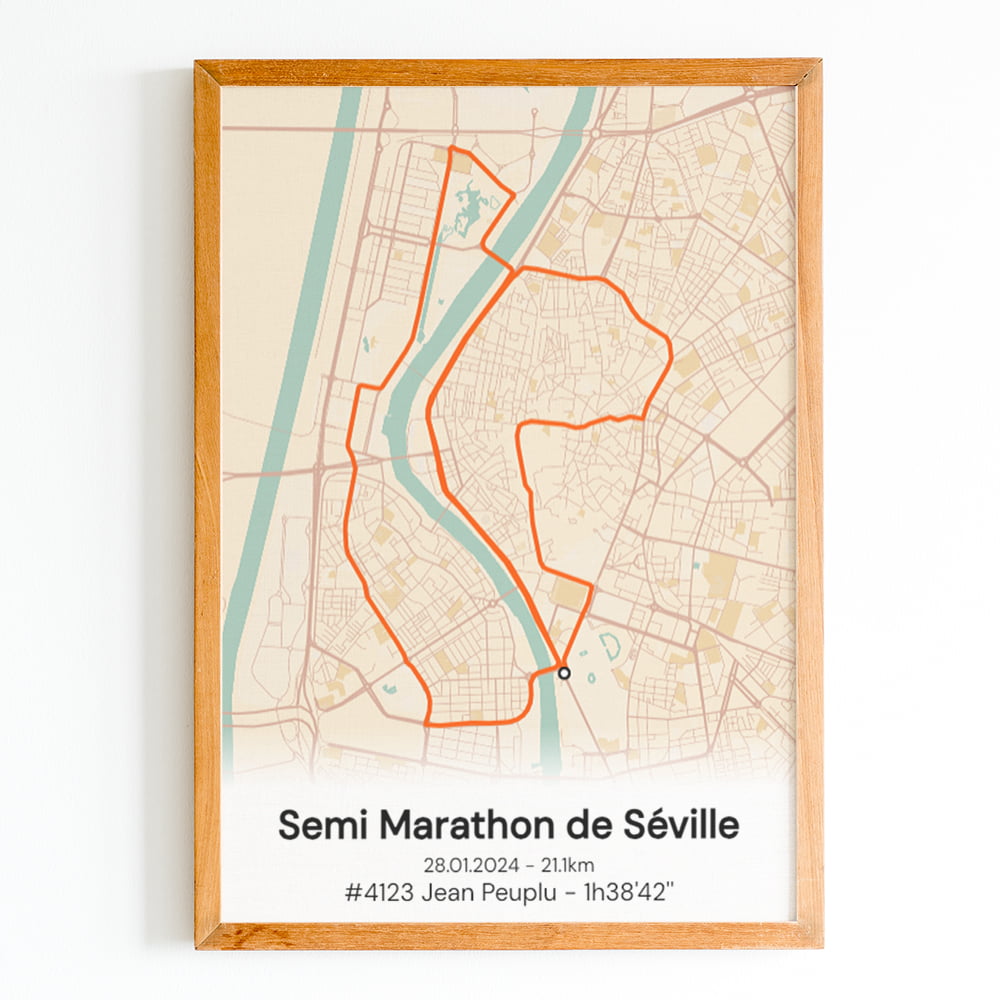 Cette affiche du parcours du Semi-Marathon de Séville est imprimée sur du papier brillant haute qualité.Pour créer un poster personnel et unique, ajoutez votre numéro de dossard, votre nom, prénom, votre temps d'arrivée ou le texte que vous souhaitez.