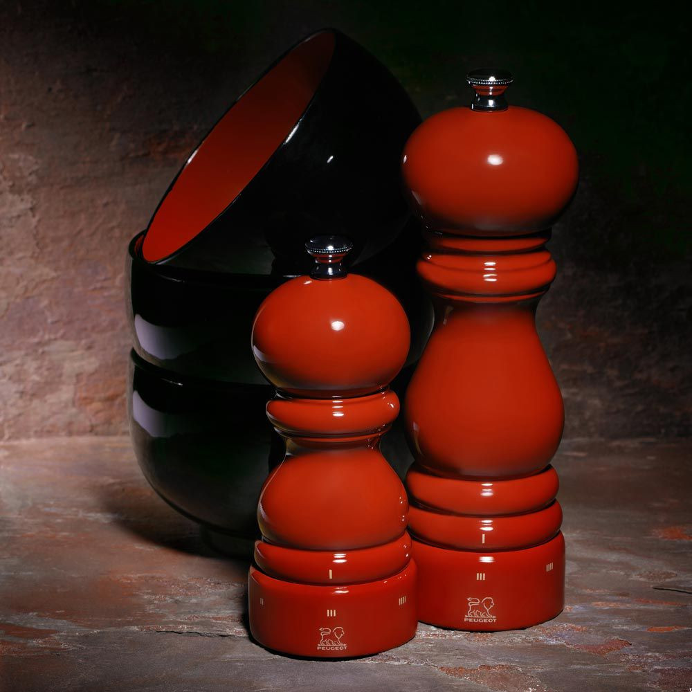 Les moulins Paris u'Select sont fabriqués en France par Peugeot. Ceux-ci possèdent un mécanisme garantie à vie. Le moulin PARIS u'Select de Peugeot est en bois naturel laqué rouge passion.