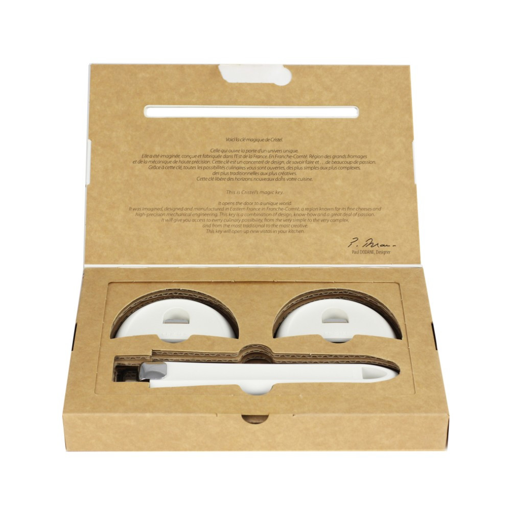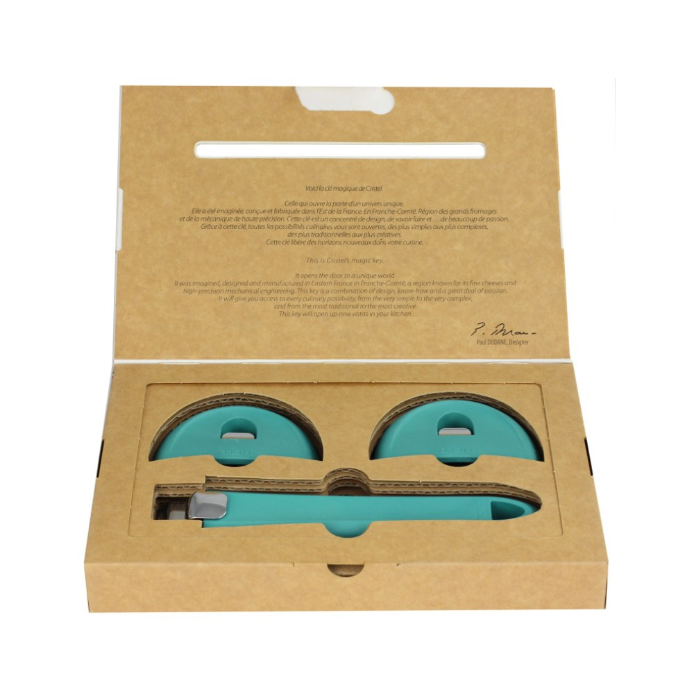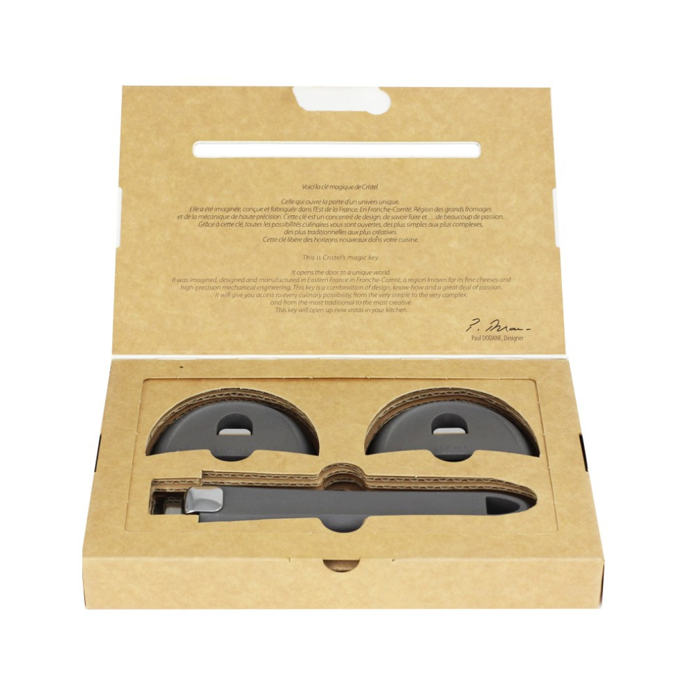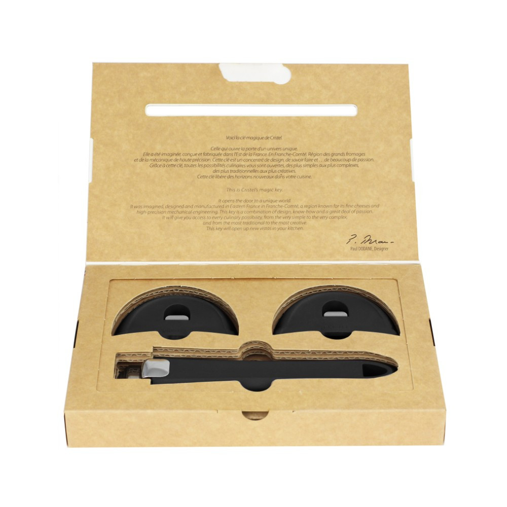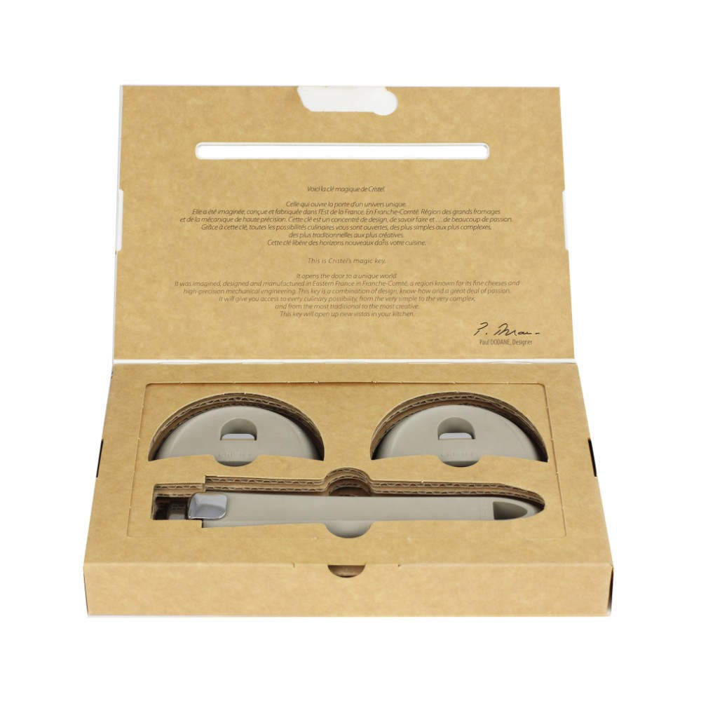 Ce set comprenant une poignée amovible et 2 anses; est issu de la collection Mutine Evolution, et est fabriqué en France par CRISTEL. Elles sont faites en résine thermo-durcie (bakélite) et sont compatible avec les casseroles, poêles et sauteuses de la Collection Mutine. Elles s'adaptent aussi à toutes les autres collections amovibles Cristel.