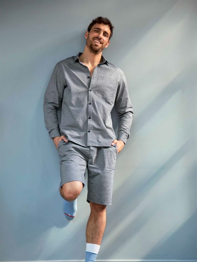JOGGSHORT PERCALE DE COTON 1083 X BLANC DES VOSGES Avec Blanc des Vosges, la manufacture vosgienne historique de linge de lit installée à Gérardmer, nous avons imaginé un joggshort à porter à la maison toute l’année ou à la plage et au bord de la piscine pendant l’été. Un short ample aussi léger qu’un t-shirt.
