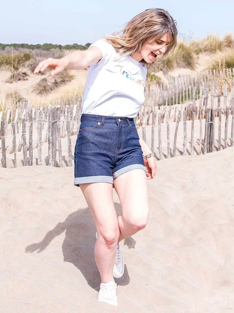 LE SHORT EN JEAN FEMME TAILLE HAUTE Ne cherchez plus le short qui vous accompagnera tout l'été ! Notre 276 a tout pour lui : une taille haute, une coupe large et un tissu Indigo qui se délave naturellement pour devenir unique. Il est filé + tissé + ennobli + coupé + confectionné en France.