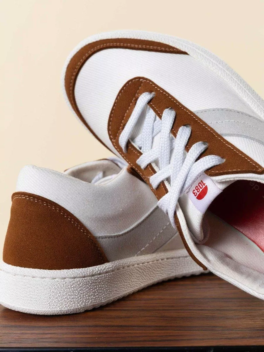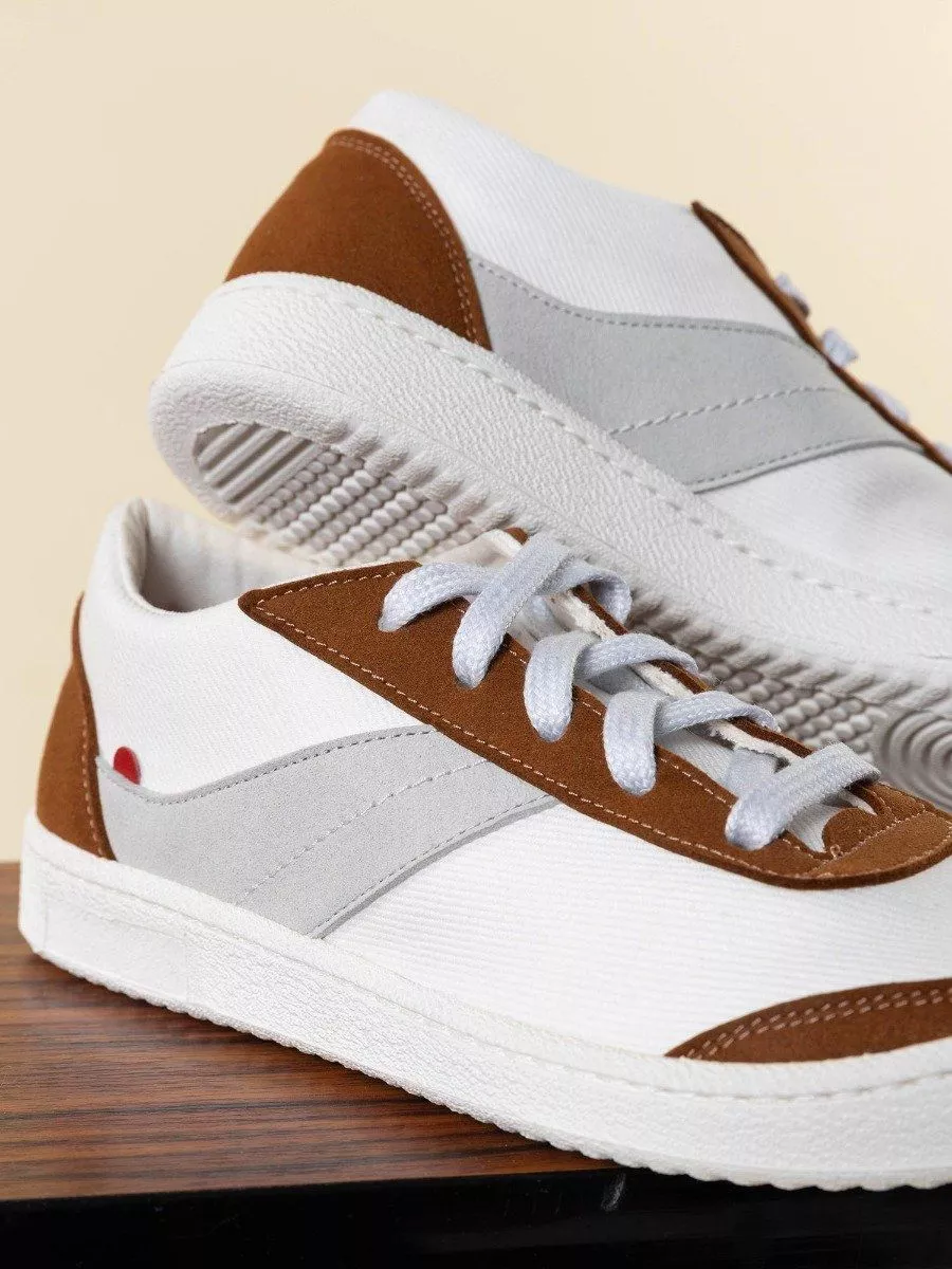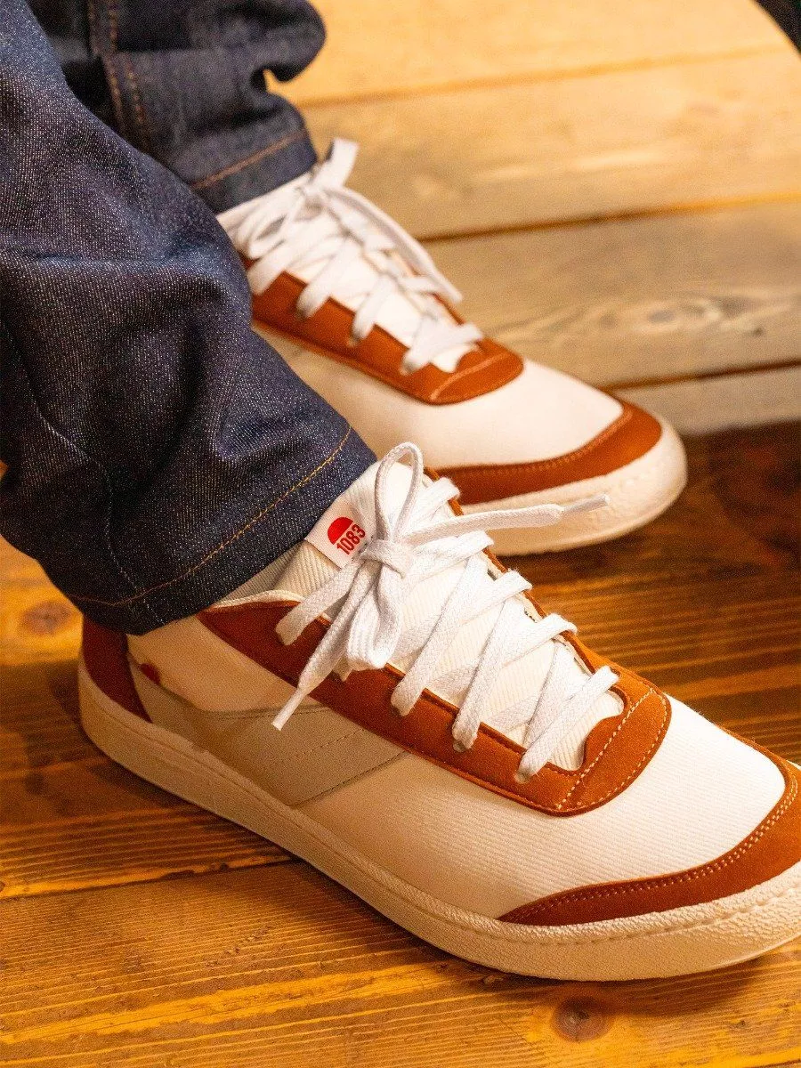 LES SNEAKERS VEGAN Fabriquée à Romans-sur-Isère, cette paire de sneakers vegan mixte associe notre denim écru et des empiècements marron argile et bleu glacier pour une allure épurée et contemporaine. Facile à porter au quotidien, elle se marie aussi bien avec un jeans brut qu’un pantalon plus habillé pour une silhouette décontractée mais soignée.