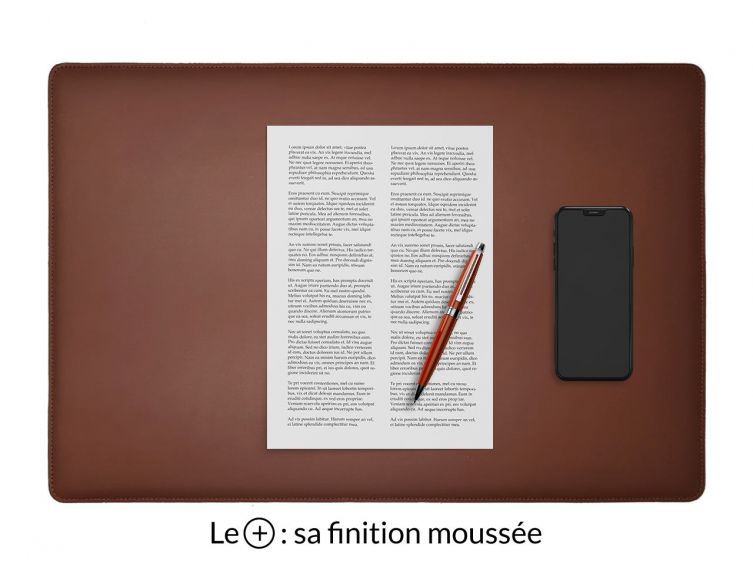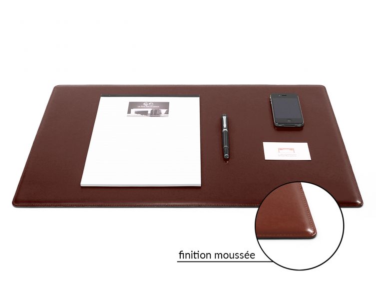 Sous-main de bureau en cuir lisse.Article personnalisable : cliquez ici.Une taille idéale pour clavier et souris (mac apple ou PC)Profitez d'une belle écriture grace à sa fine épaisseur de mousse dense sous le cuir. Modèle avec un relief très qualitatif. Faible épaisseur de 6 mm. Cuir lisse.Bien étudié, il plaque parfaitement sur le bureau.Fabrication artisanale française. Collection "Premium"