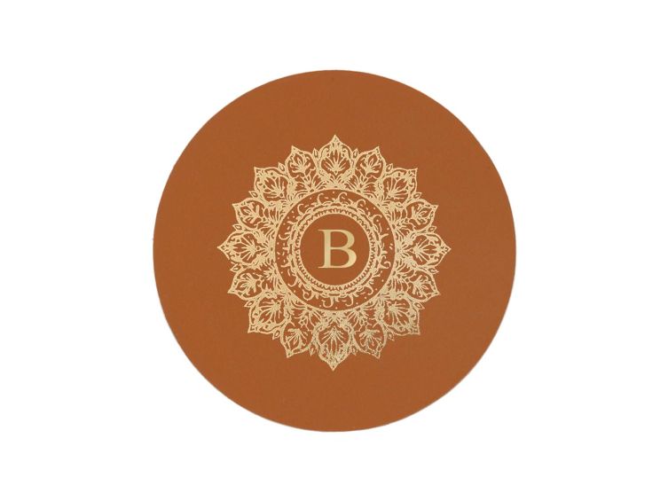 Idéal pour votre bureau, votre table ou votre table de chevet, ce sous-verre allie utilité et élégance. Son mandala doré délicatement imprimé, accompagné d'une initiale personnalisée, apporte une touche raffinée à votre espace tout en protégeant vos surfaces des éventuelles taches.Fabrication artisanale française.Diamètre 9 cm