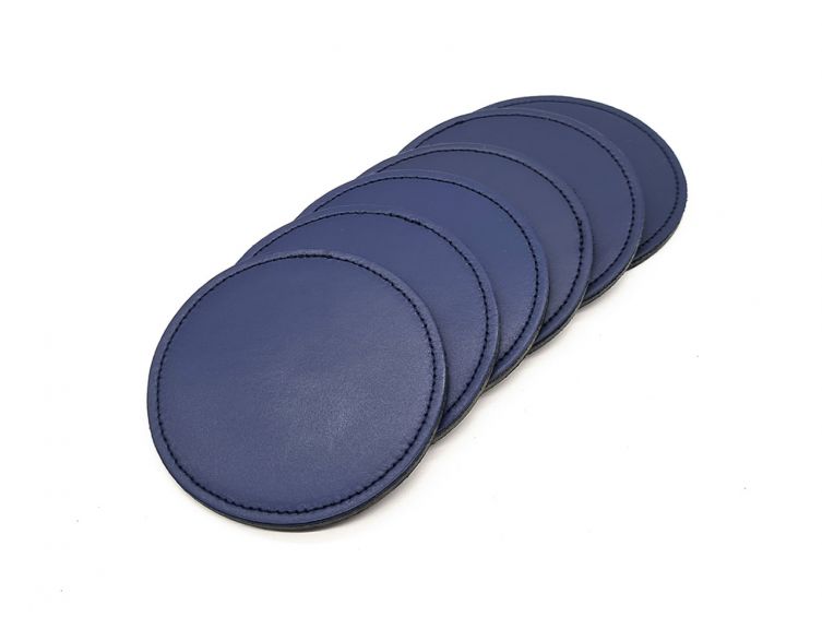 Sous-Verre rond en cuir bleu cobalt, set de 6