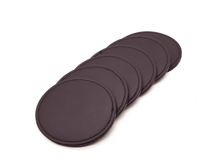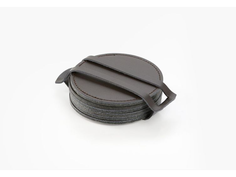 Sous-Verre rond en cuir marron foncé, set de 6