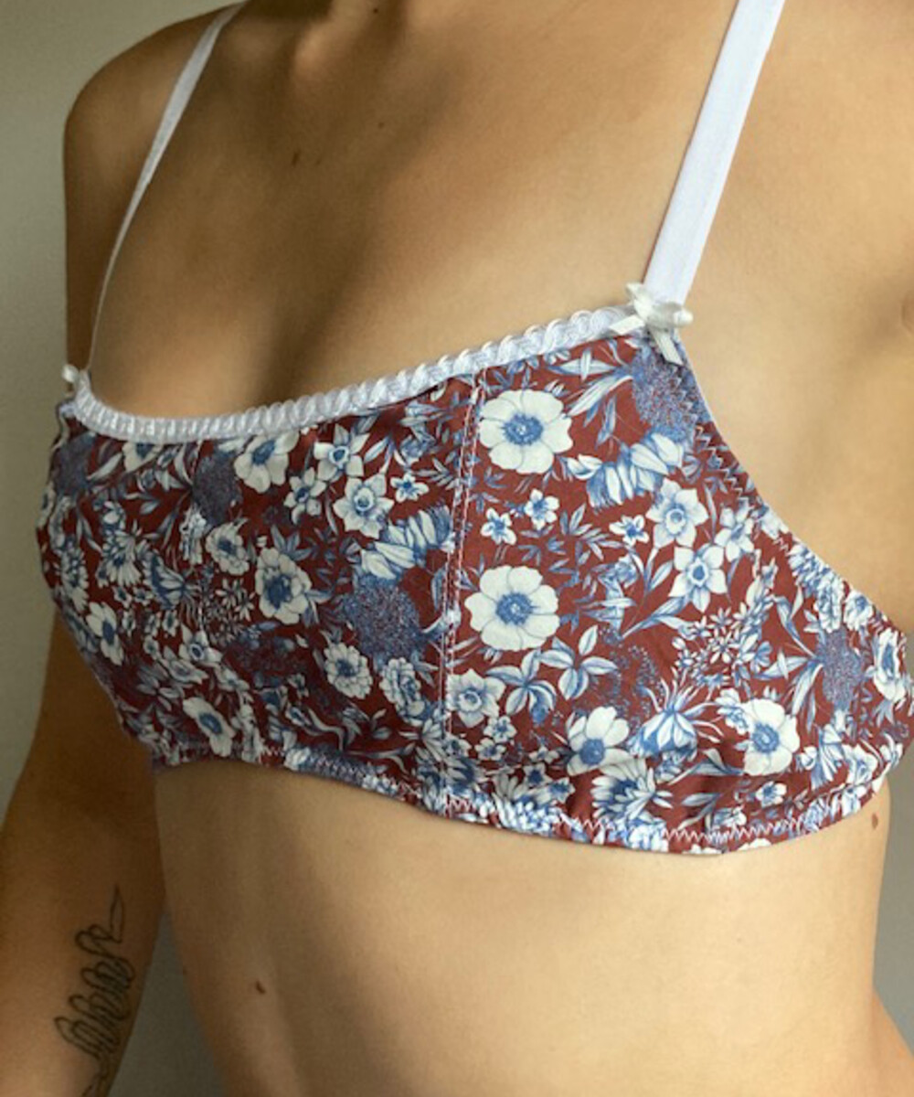 Soutien-gorge sans armature 100% coton made in France - Bleu/Blanc/Marron