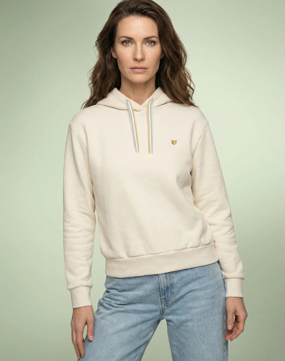 Sweat à capuche - Ecru - Blanc - Femme | Esther, le sweat à capuche basique qui ne fait aucun compromis. Sa coupe droite avec belle aisance assure confort et liberté de mouvement, tandis que la capuche croisée apporte un twist subtil et élégant.
