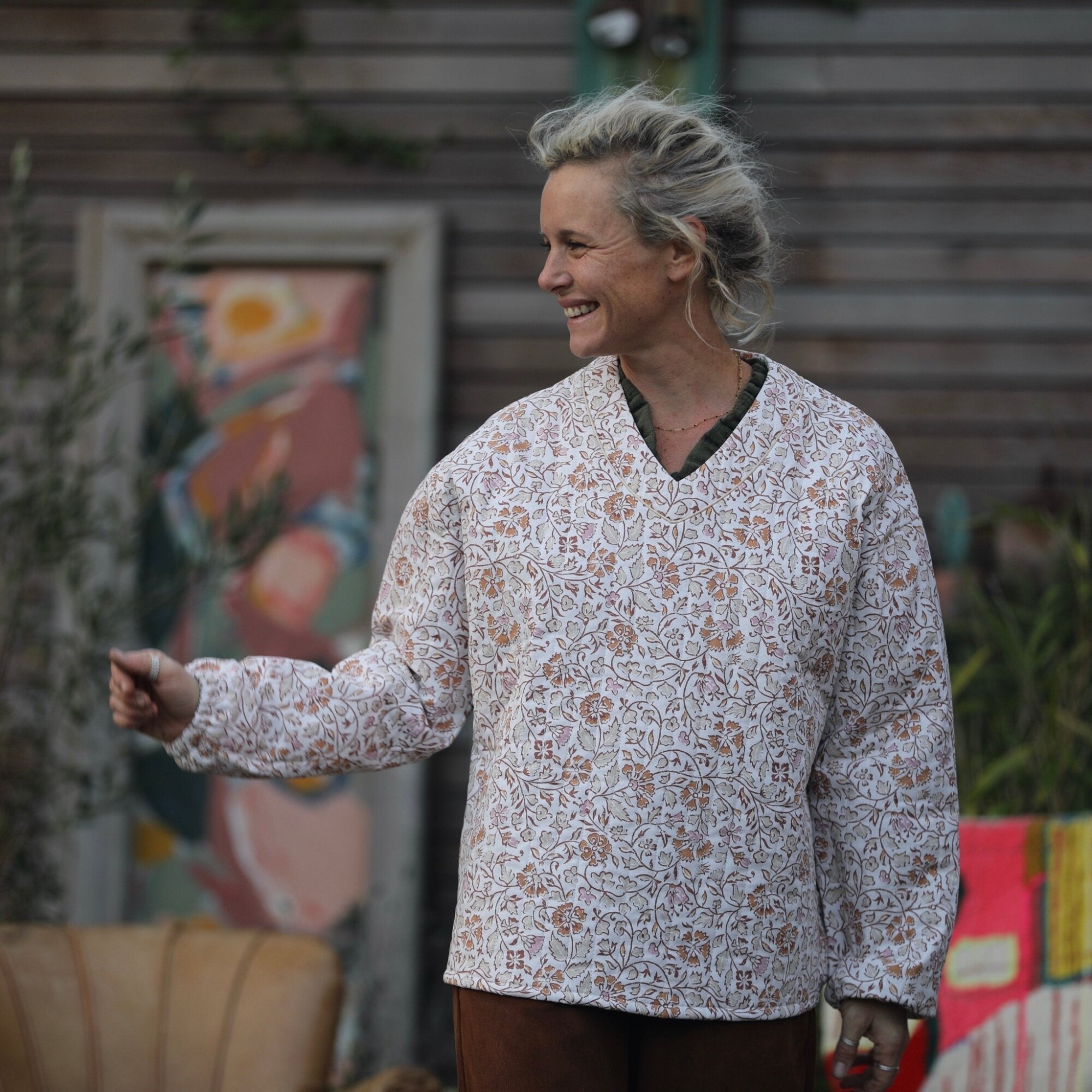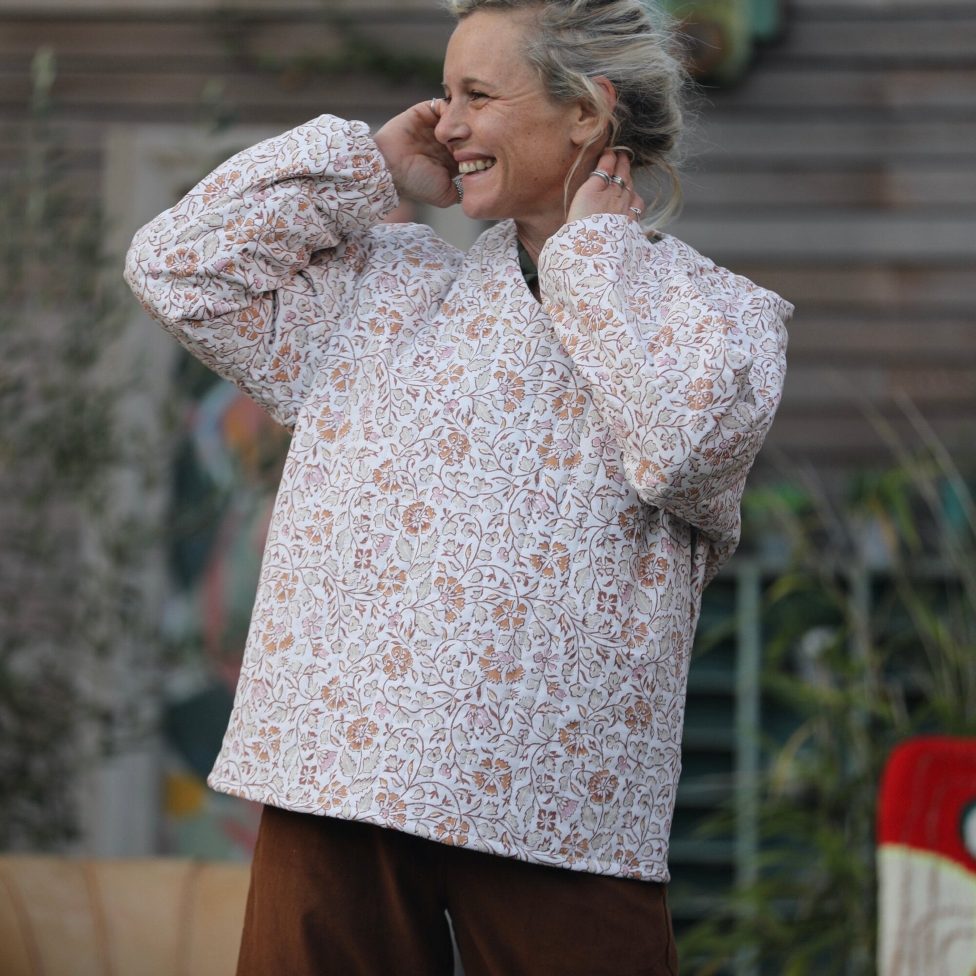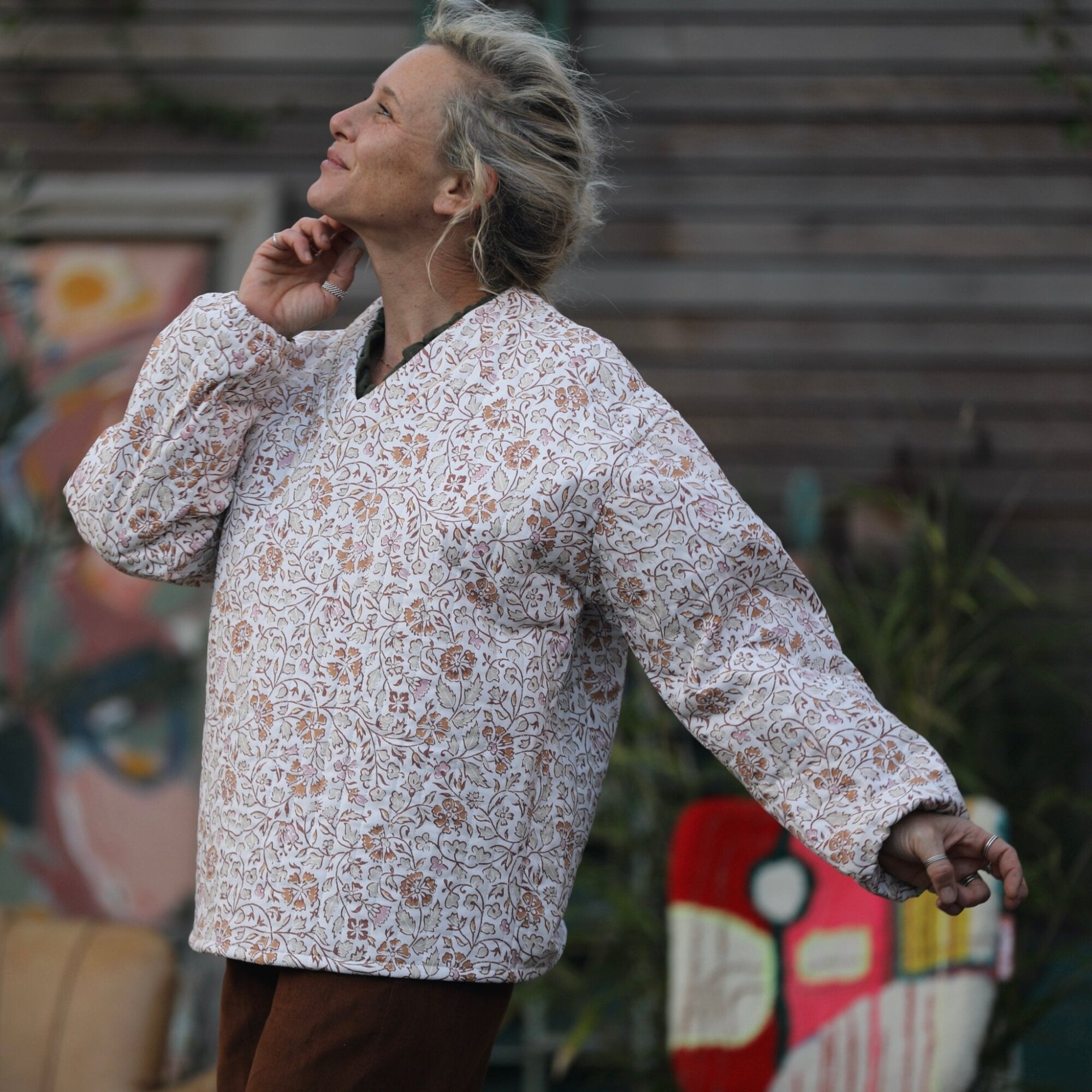 Sweat Gustave - coton matelassé fleuri automnal/ doublure fleuri rosé