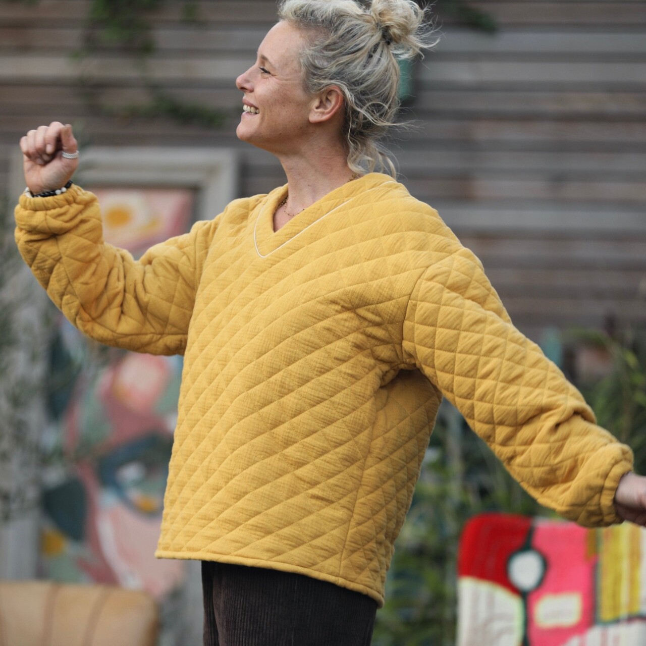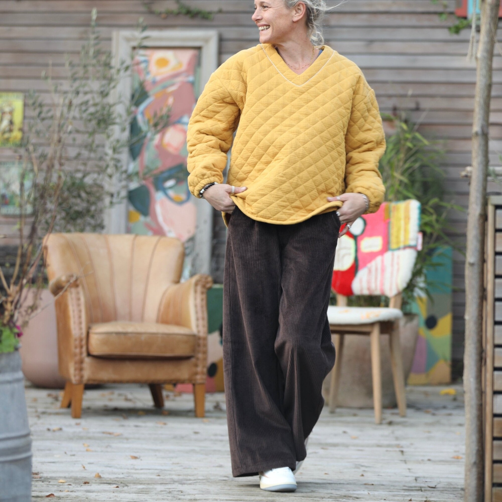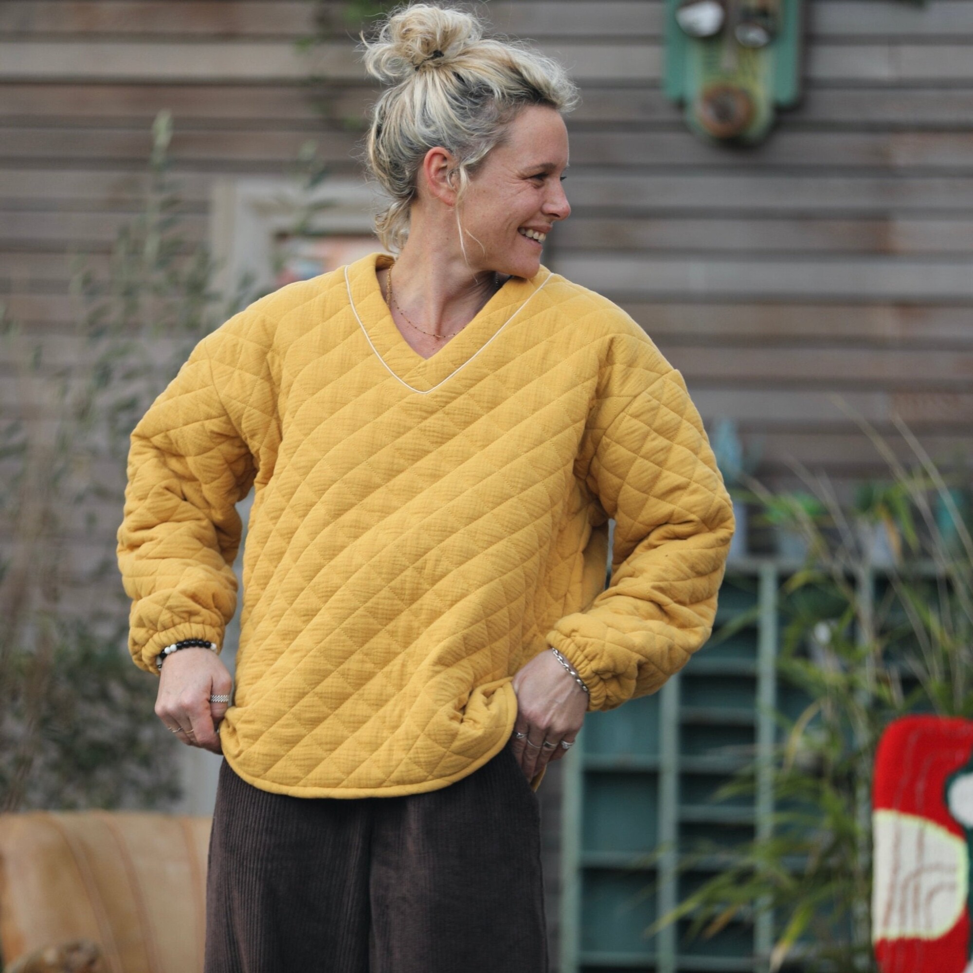 Sweat Gustave- matelassé en double gaze de coton ocre