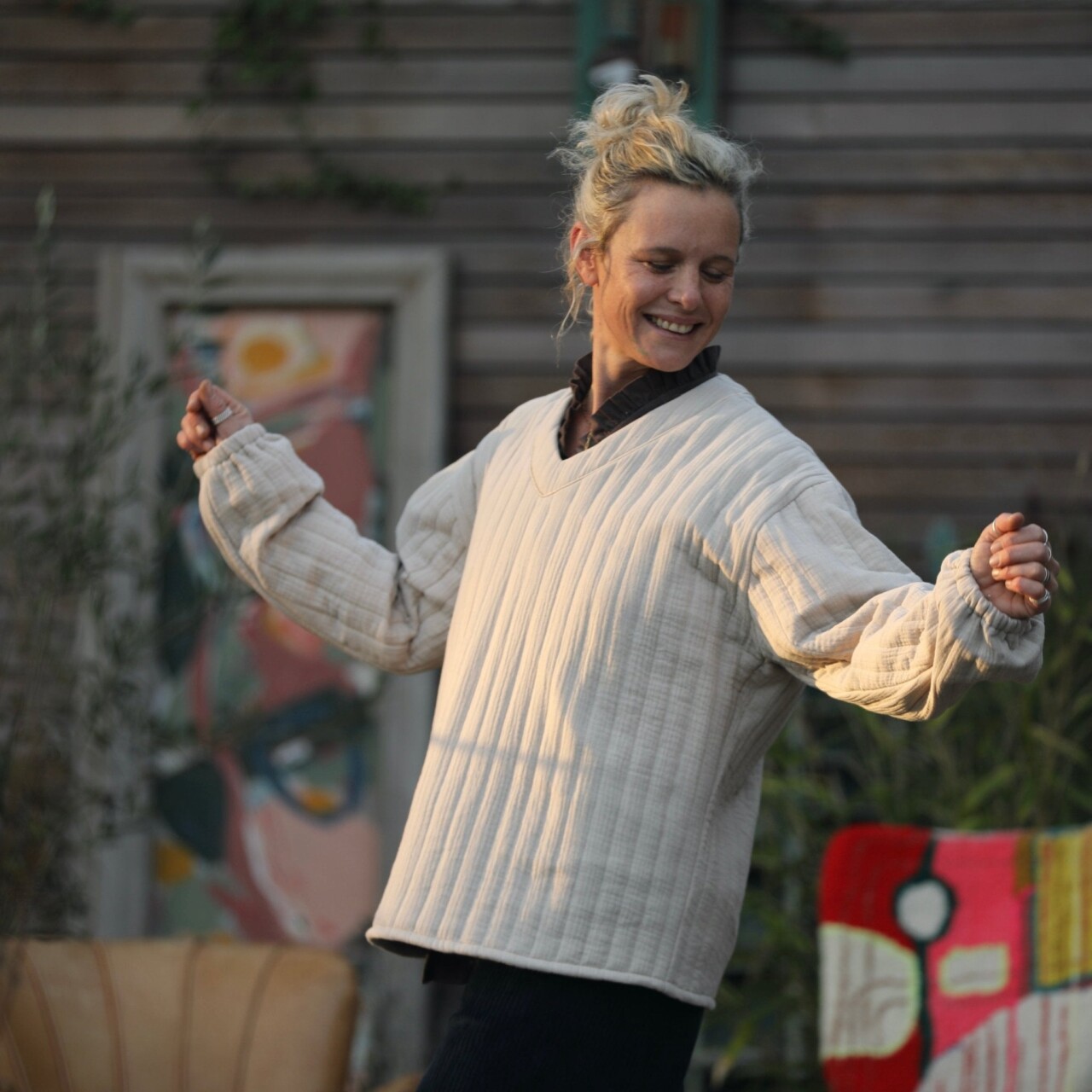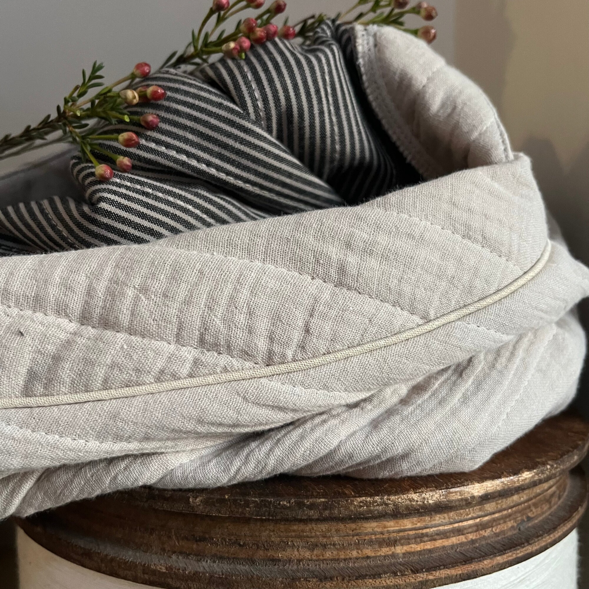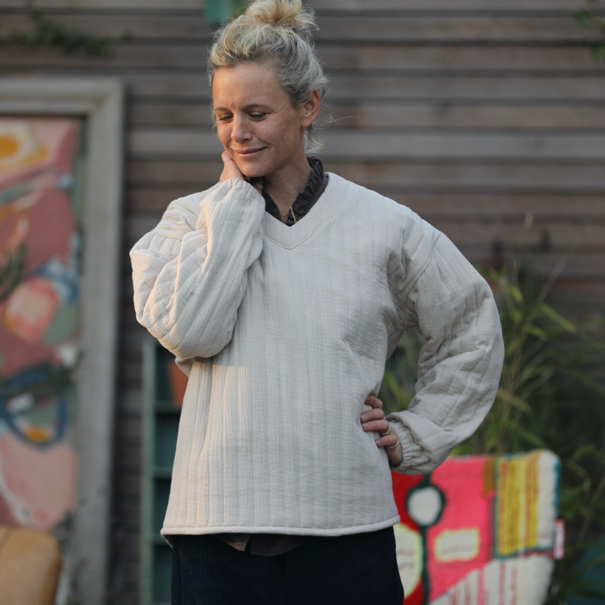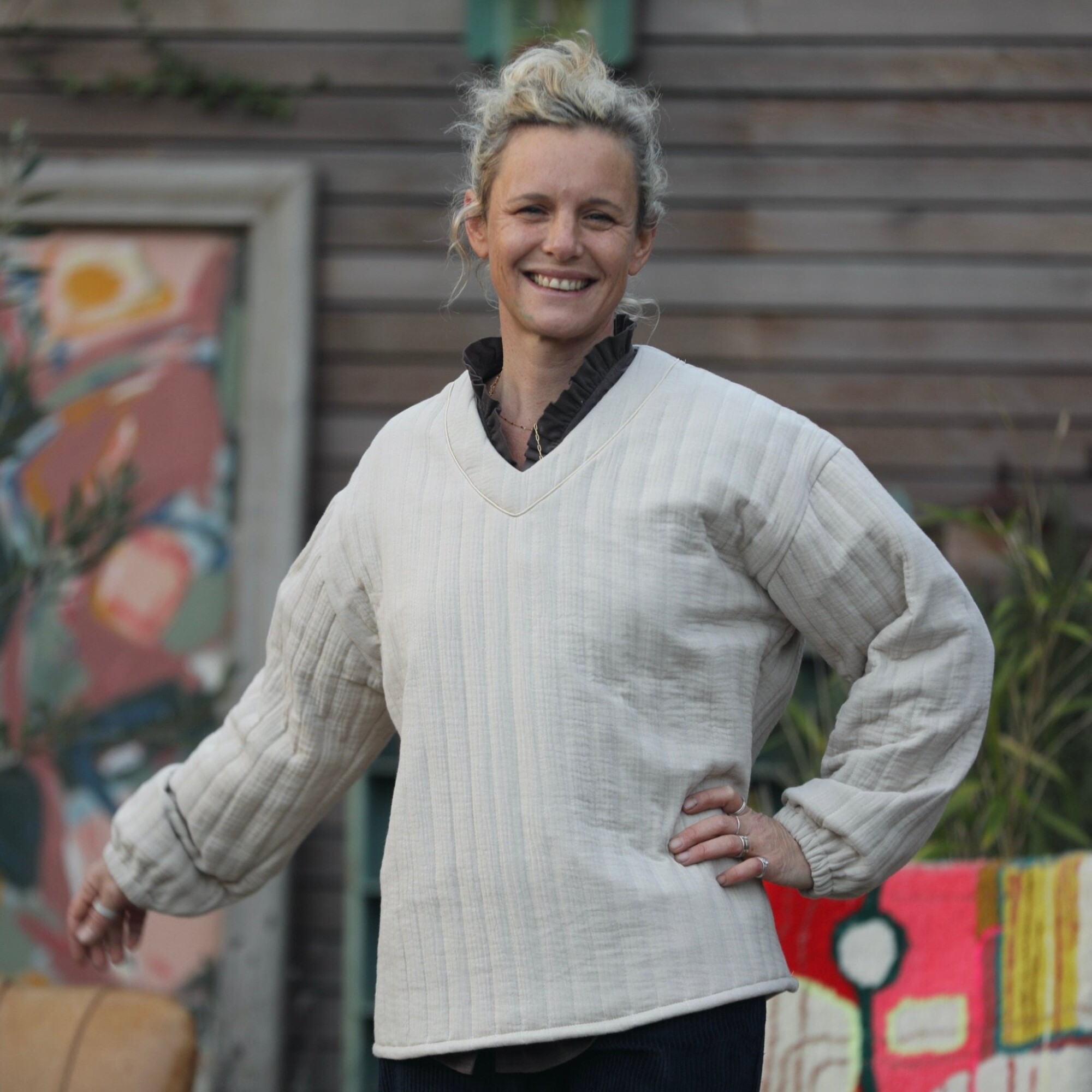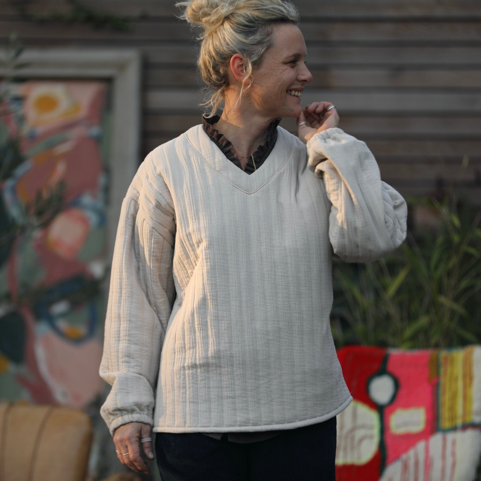 Sweat Gustave- matelassé en double gaze de coton sable/envers rayé