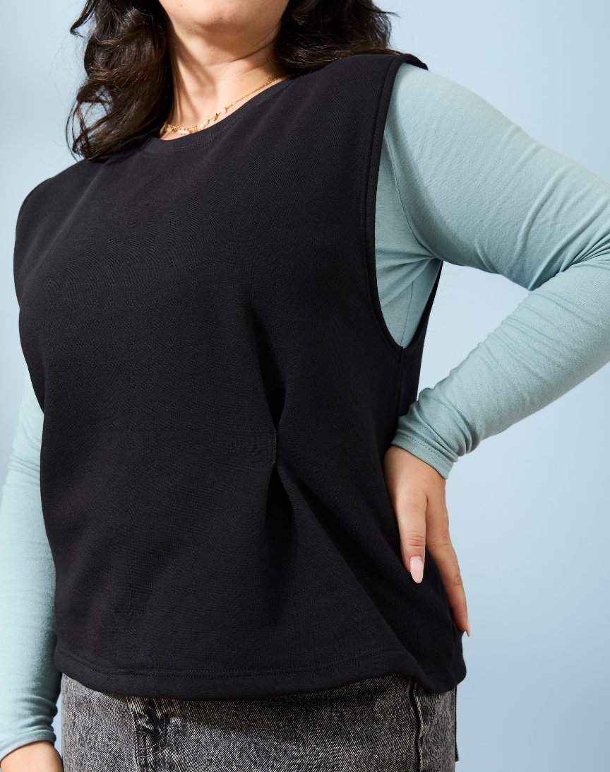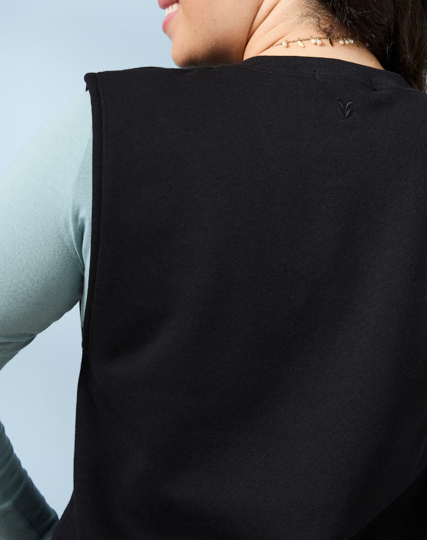 Sweat sans manches Coton BIO - Noir - Femme | Le sweat sans manches qu’on va toutes adorer cet hiver ! Facile à enfiler sur vos chemises, pulls fins ou t-shirts préférés, il apporte tout de suite du style sans sacrifier le confort. Son molleton épais et doux enveloppe agréablement et donne une belle tenue.