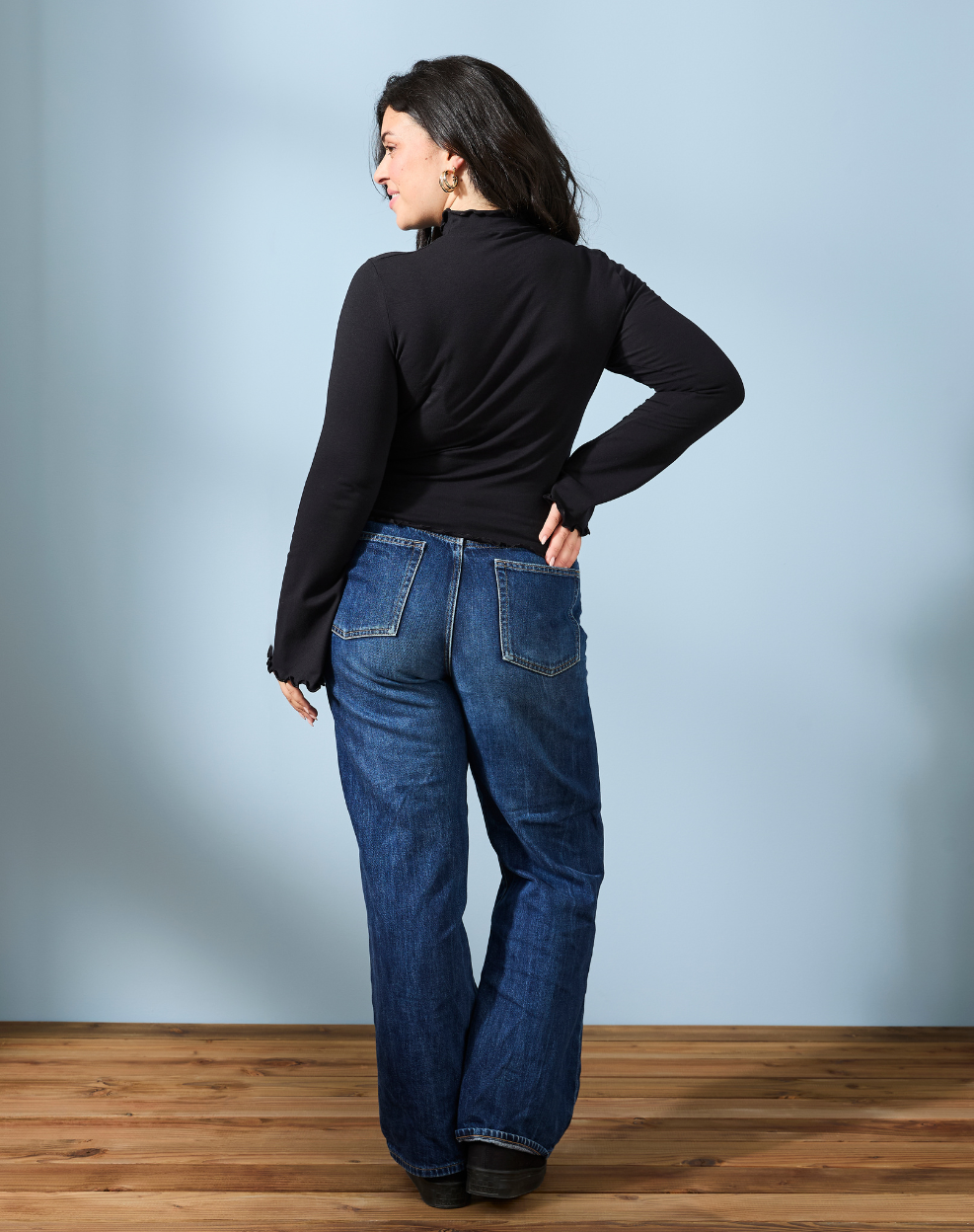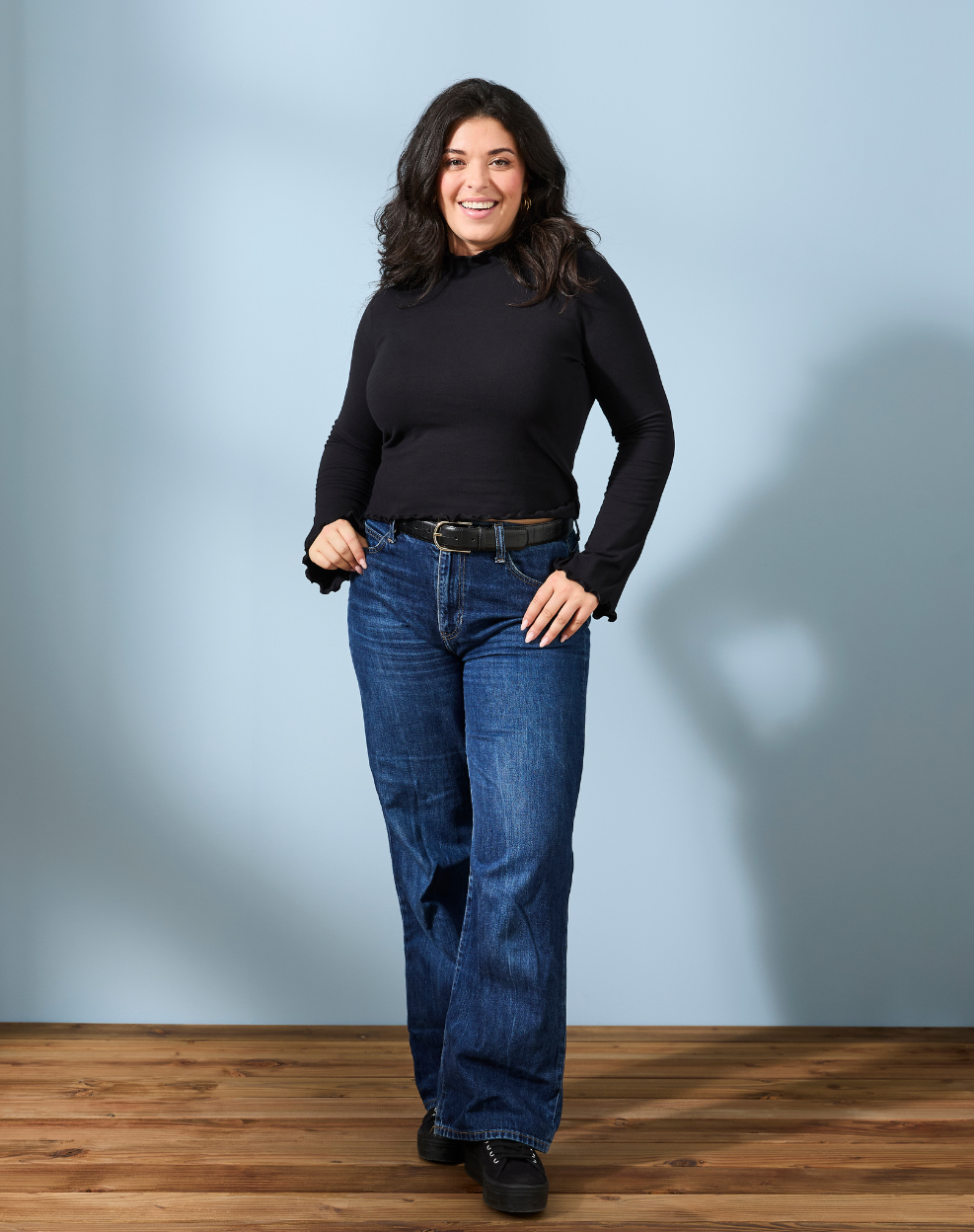 T-shirt col cheminée - Noir - Femme | Un petit haut noir qui a tout d’un grand classique… avec ce twist en plus qu’on adore ! Entre ses bords ondulés, son col délicatement froncé et ses manches longues légèrement évasées, ce top revisite le basique noir avec une touche de caractère. Confortable et facile à porter, il se glisse sous une veste, accompagne un jean ou s’associe à une jupe pour un look plus habillé.