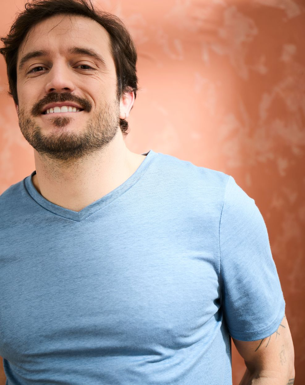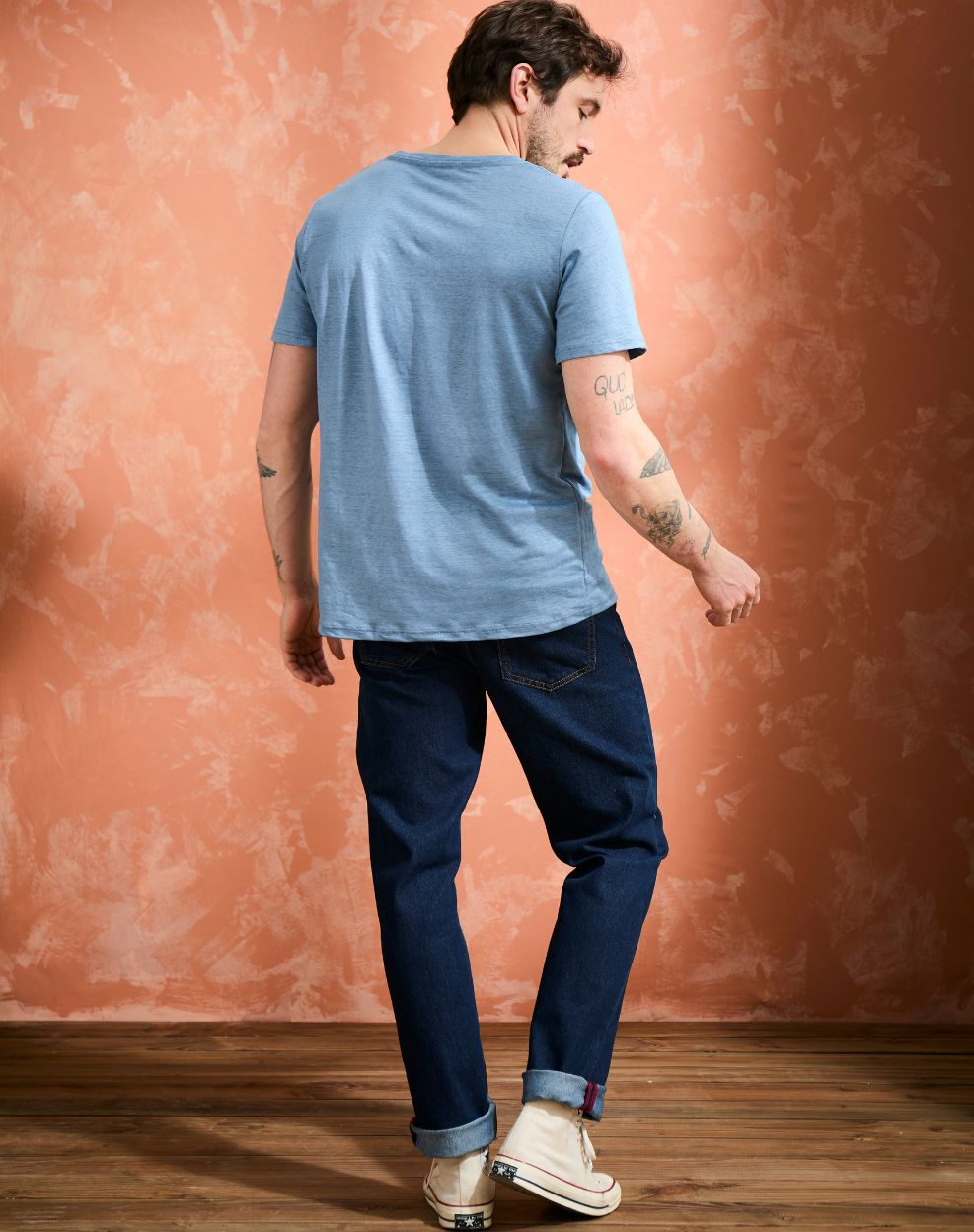 T-shirt col V 100% Lin - Bleuet - Homme | Un bleu ciel doux, une élégance naturelle. Alin, c’est l’élégance décontractée d’un t-shirt col V en lin 100% français.