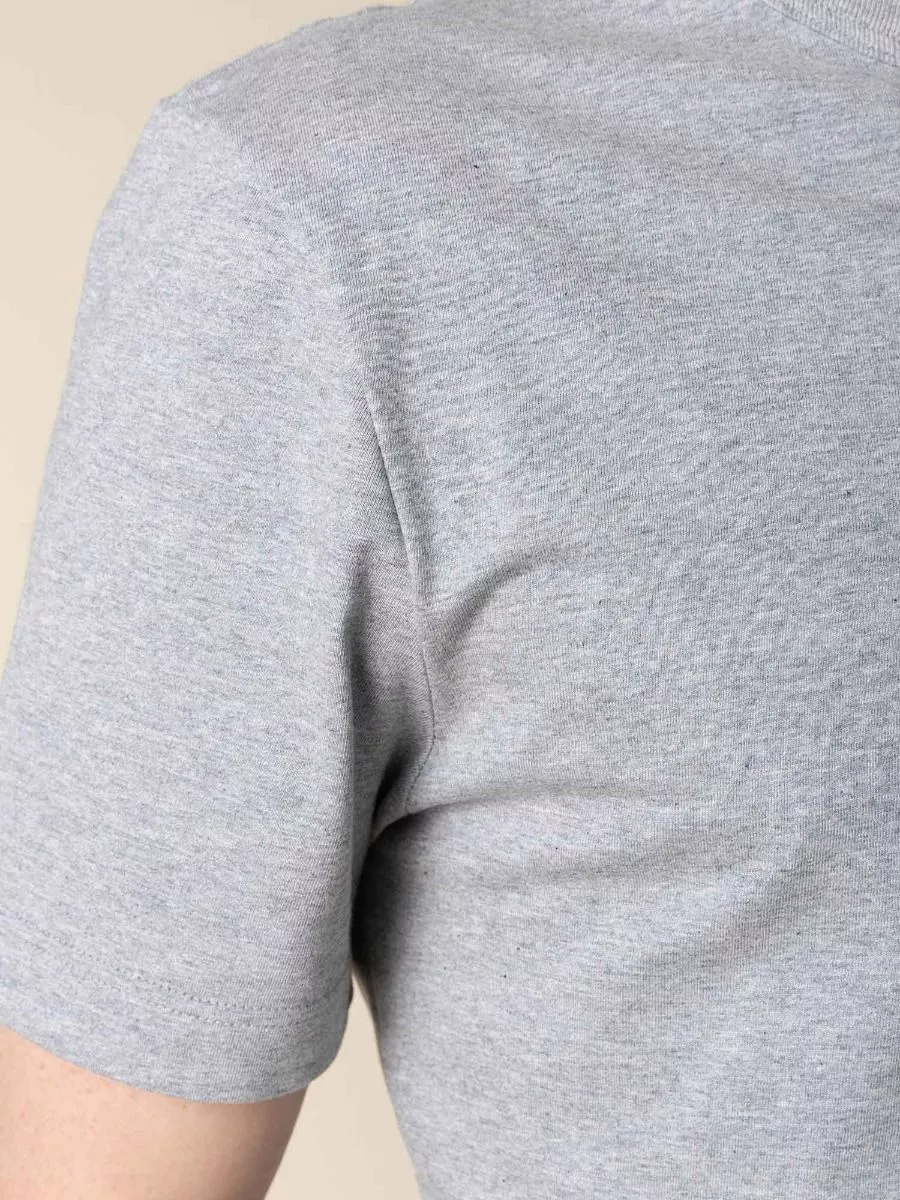 T-SHIRT 100 % COTON BIO GRIS CHINÉ HOMME Le t-shirt droit 304, en gris chiné et au col rond, un basique à avoir dans sa garde-robe ! Son jersey est 100 % coton bio de 180g/m2. Ce tricot améliore la tenue et donc la durabilité de votre t-shirt dans le temps.