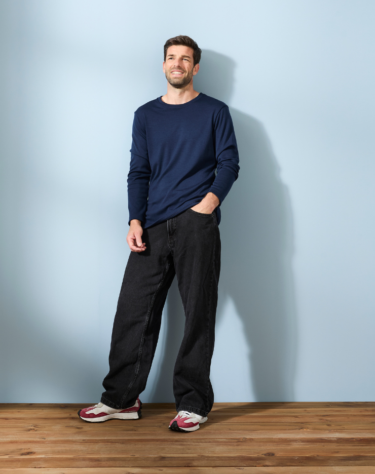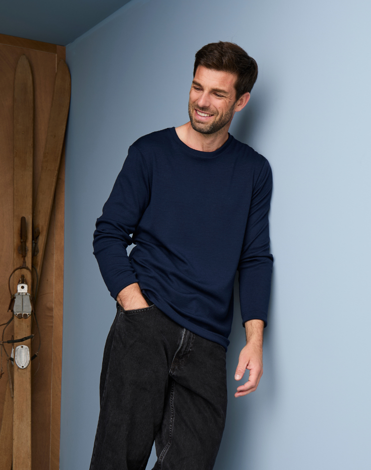 T-shirt épais 100% Laine Mérinos - Bleu Minuit - Homme | Le pull en laine mérinos : Hyper polyvalent et performant.Cette pièce à manches longues, aussi douce que légère, vous accompagne toute l'année avec un confort inégalé.
