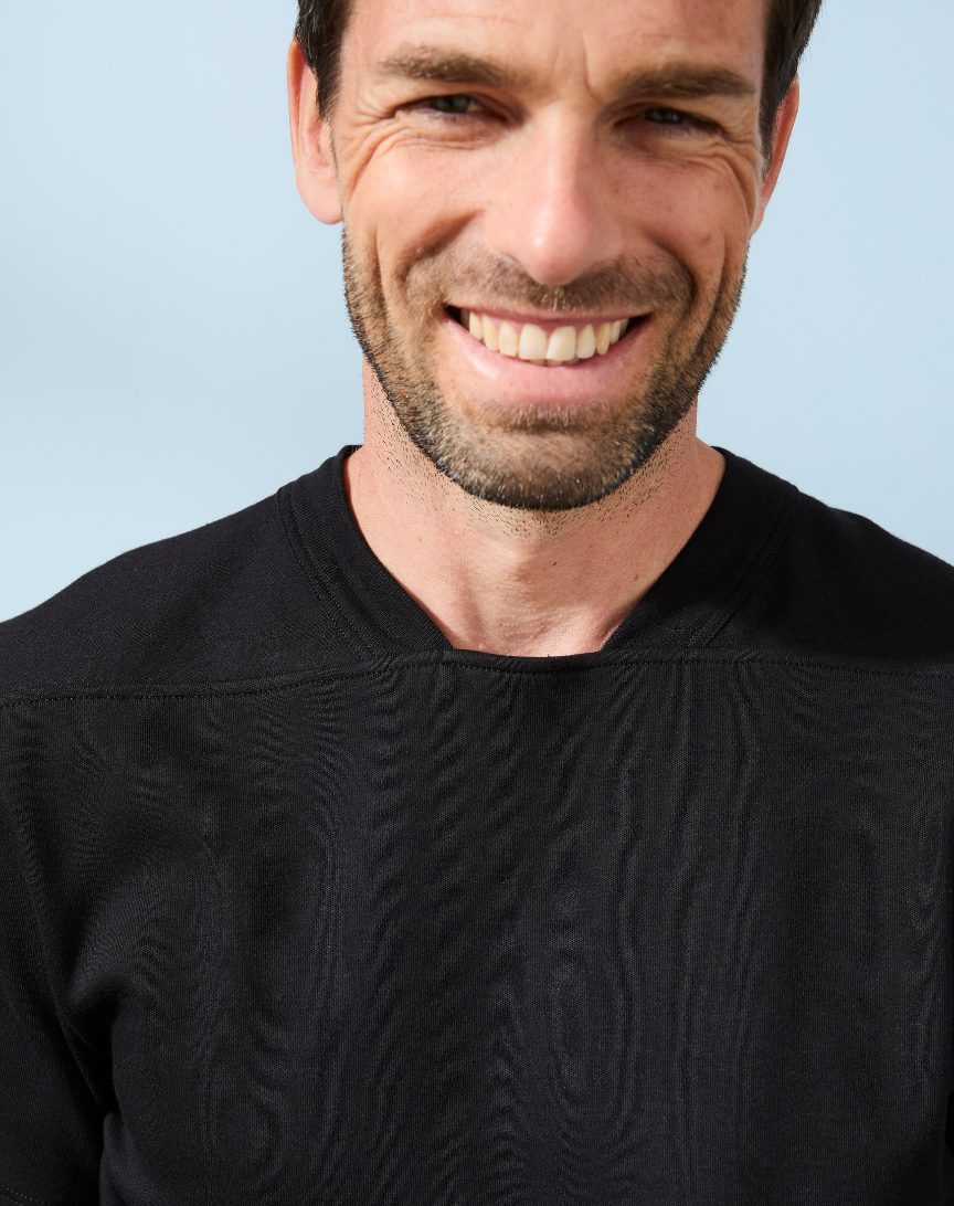 T-shirt épais col signature en Coton Bio - Noir - Homme | Ce t-shirt manches courtes n’est vraiment pas un basique comme les autres. Sa découpe graphique sur le haut du buste attire le regard et met en valeur le haut du corps tout en subtilité.