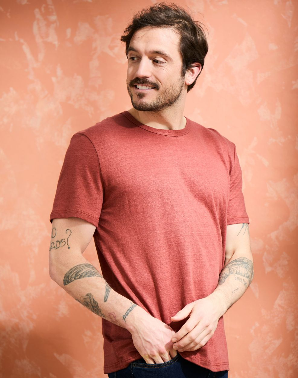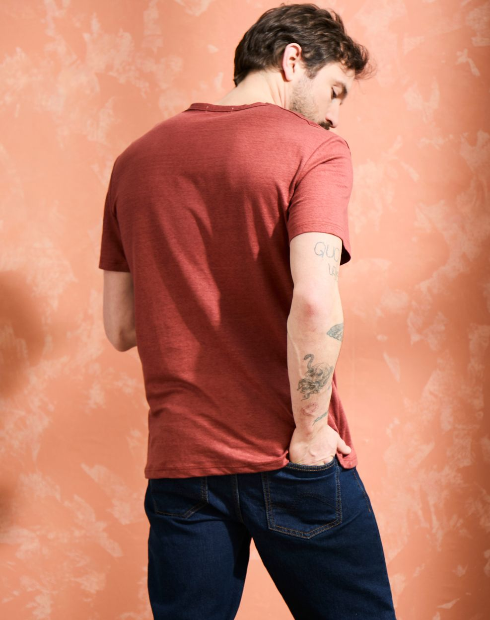 T-shirt homme 100% Lin - Terracotta - Homme | La douceur brute du lin, la chaleur d’un terracottaqui réchauffe le style. Alin, c’est le t-shirt qu’on enfile sans hésiter et qui fait toute la différence.