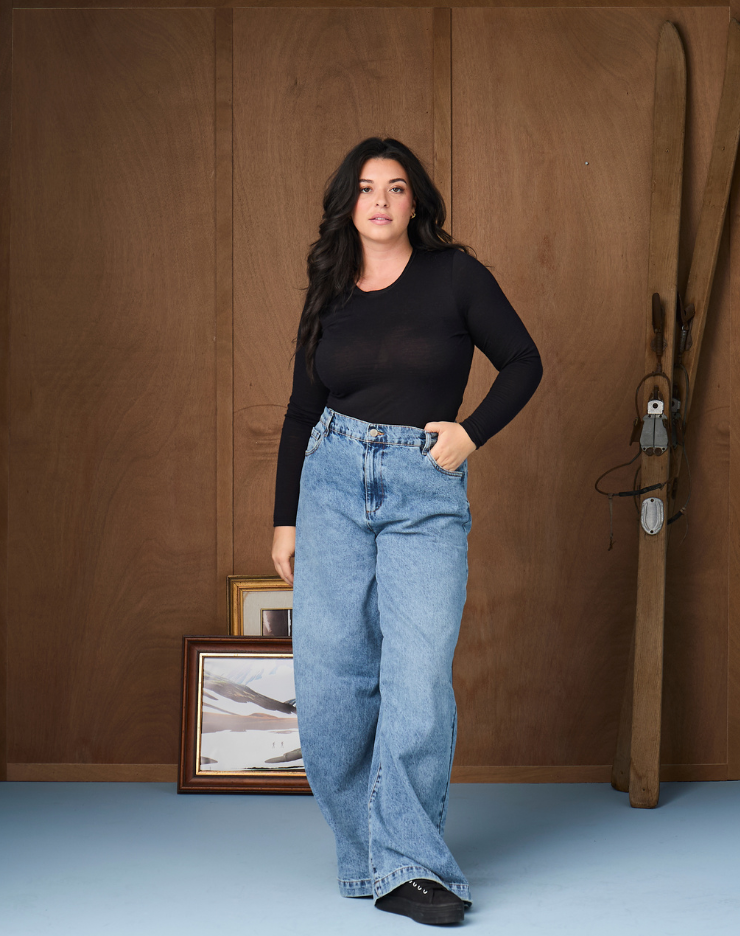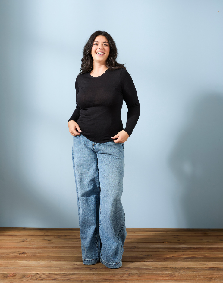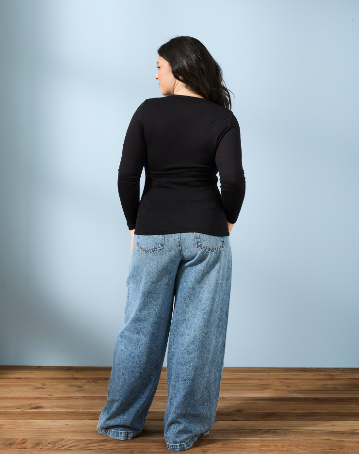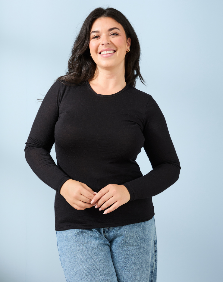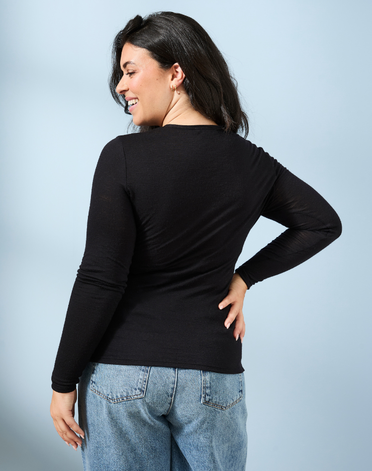 T-shirt manches longues col rond Laine Mérinos - Noir - Femme