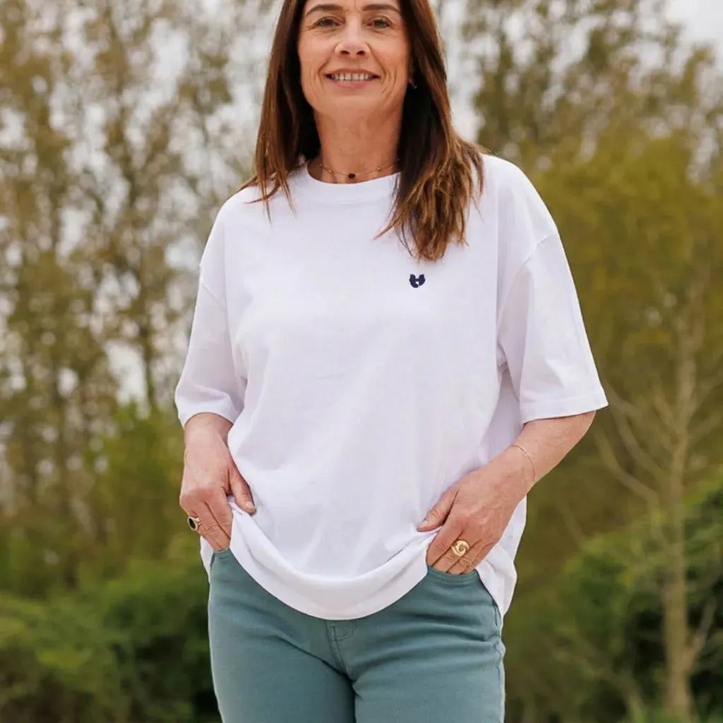 t-shirt oversize femme coeur: l'élégance décontractée et éco-responsableDécouvrez le t-shirt oversize femme COEUR, une pièce maîtresse qui allie harmonieusement style décontracté et confort absolu. Conçu pour la femme moderne, ce t-shirt blanc à col rond est parfait pour toutes les occasions, offrant une tenue impeccable et une matière fluide qui s'adapte à votre quotidien.