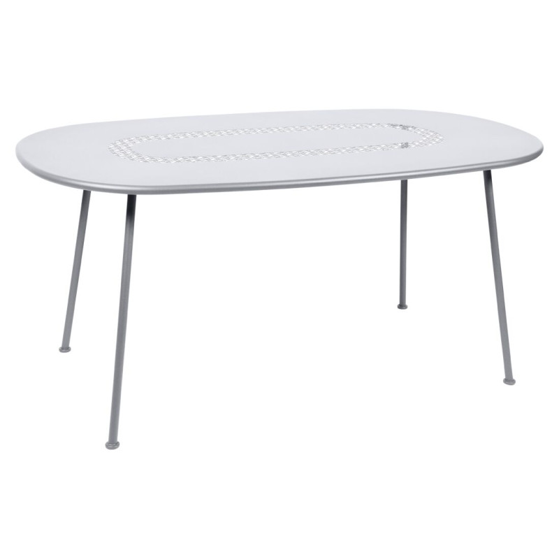 Table à manger ovale fabriquée en France par FERMOB. Issue de la collection LORETTE.Design : FRÉDÉRIC SOFIASi son originalité tient dans sa forme, la table de jardin ovale Lorette se distingue aussi par son plateau métal ajouré.