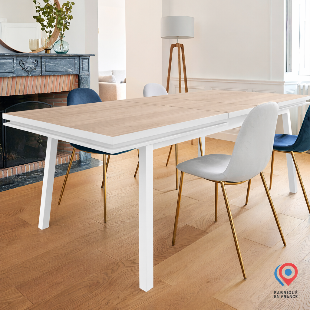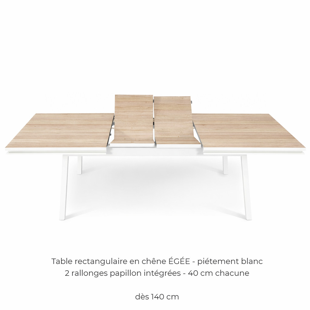 Table extensible ÉGÉE en chêne naturel - piétement blanc