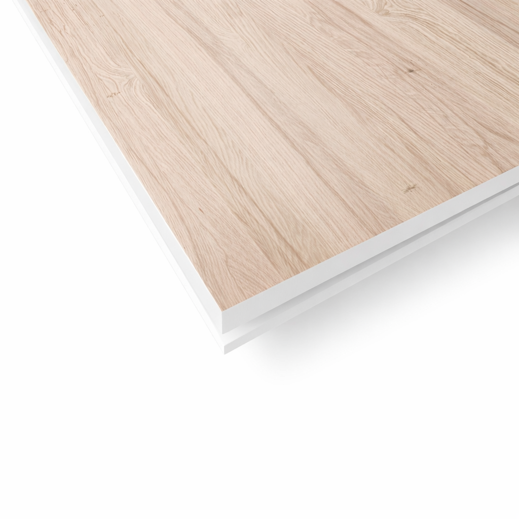 La table extensible ÉGÉE en chêne naturel et laque blanche incarne une approche exigeante et lumineuse du mobilier contemporain : un bois massif authentique, une finition claire maîtrisée et une conception pensée pour durer. Dessinée par Éric Gizard, elle associe la noblesse du chêne naturel blanchi à une laque blanche mate, pour une présence plus légère, élégante et apaisée. L’ensemble crée un équilibre subtil entre matière, lumière et proportions.