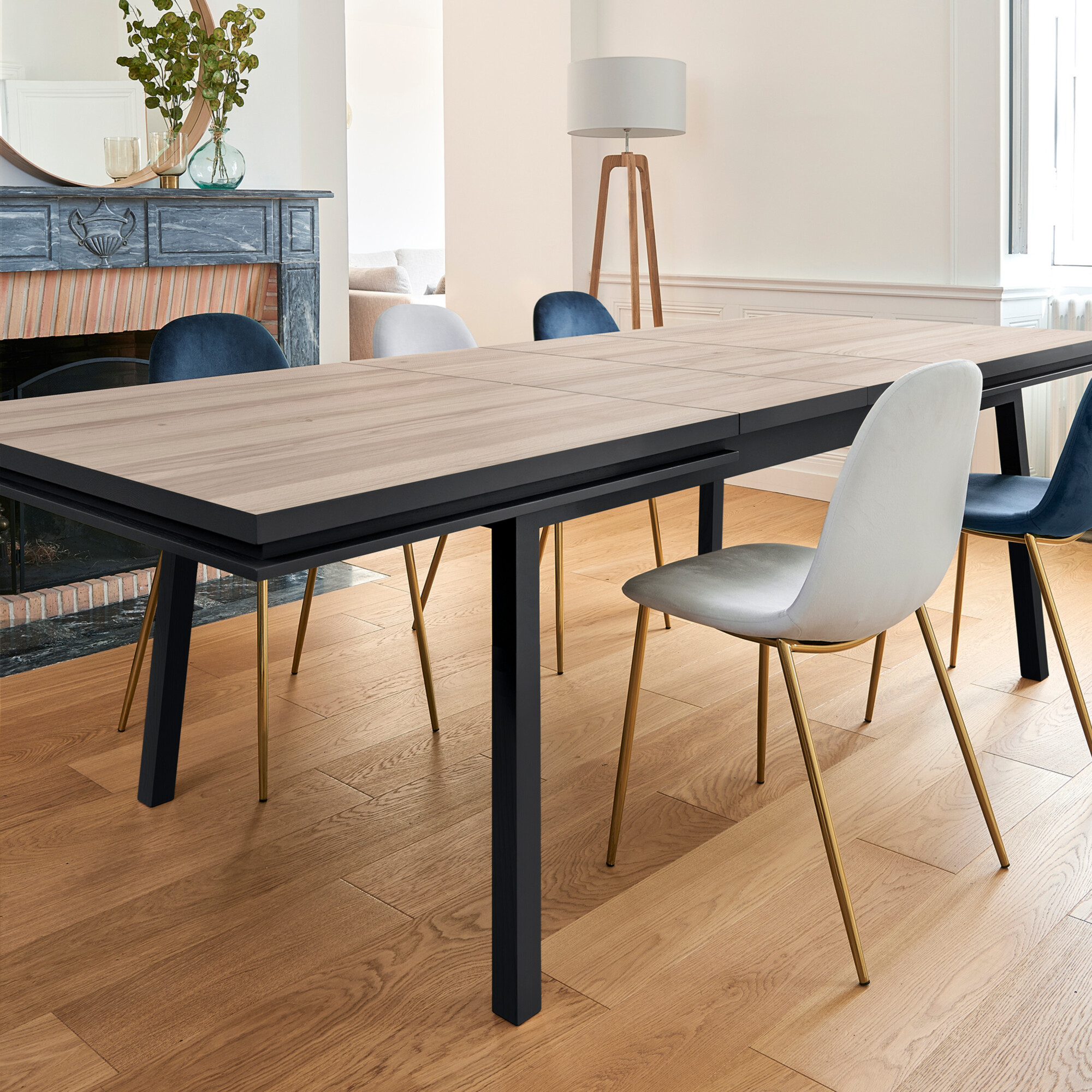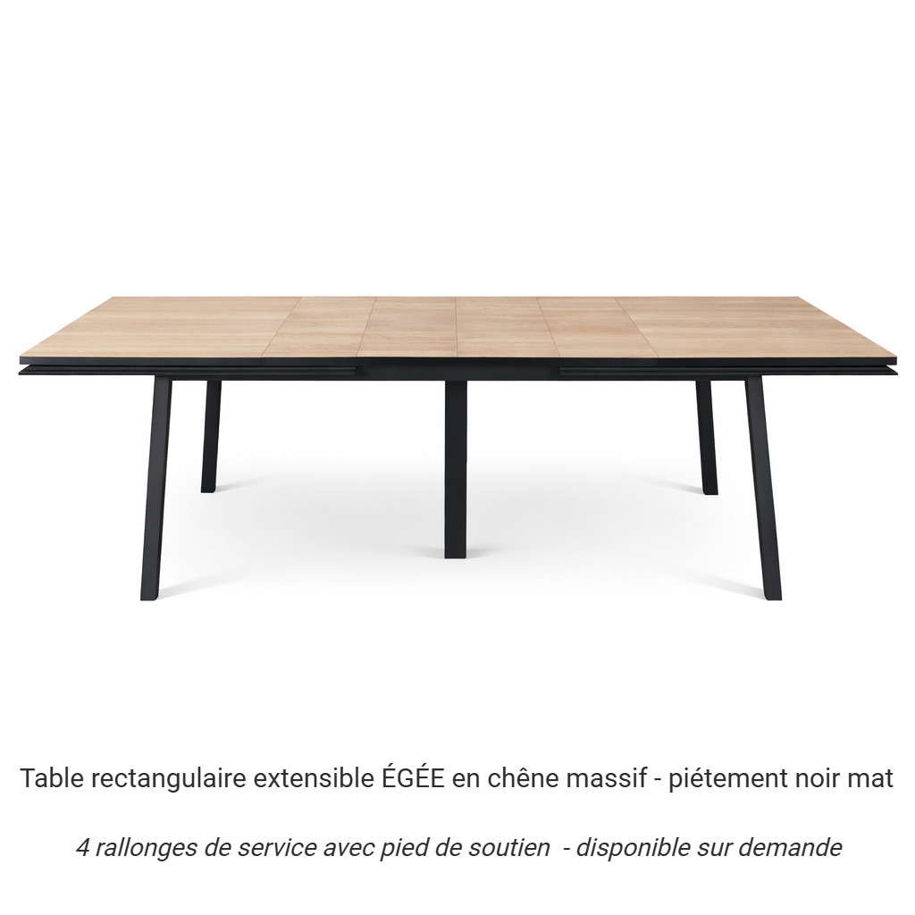 Table extensible ÉGÉE en chêne naturel - piétement noir mat