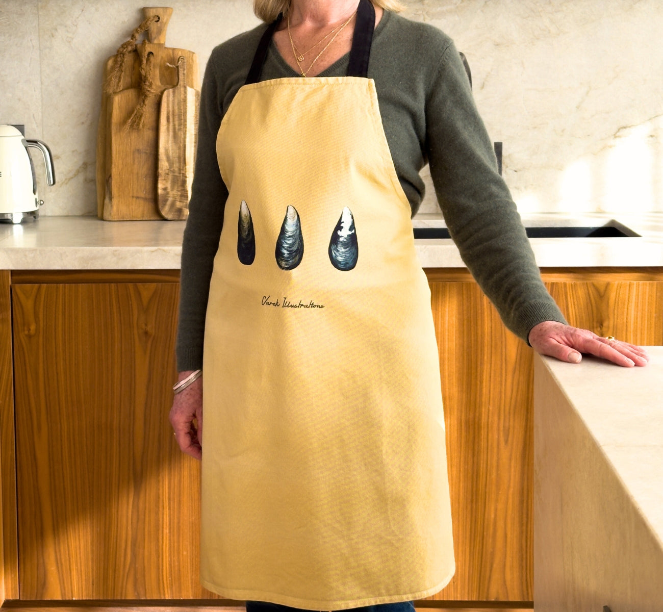 Les Tabliers Varek Illustrations sont confectionnés à la main, en France, dans un atelier provençal. C'est l'alliance parfaite du savoir-faire artisanal et de la passion pour la peinture. Imprimé à même la maille en coton, il est l'allié idéal pour toutes vos préparation culinaires qui sentent bon l'air marin. 100% Coton certifié Oeko - Tex - 210gr/m2 Impression quadrichromie. Confectionné et imprimé en France. Lavable en machine à 60° L'illustration est une reproduction de Moules peintes à l'acrylique par Côme, peintre & pêcheur.
