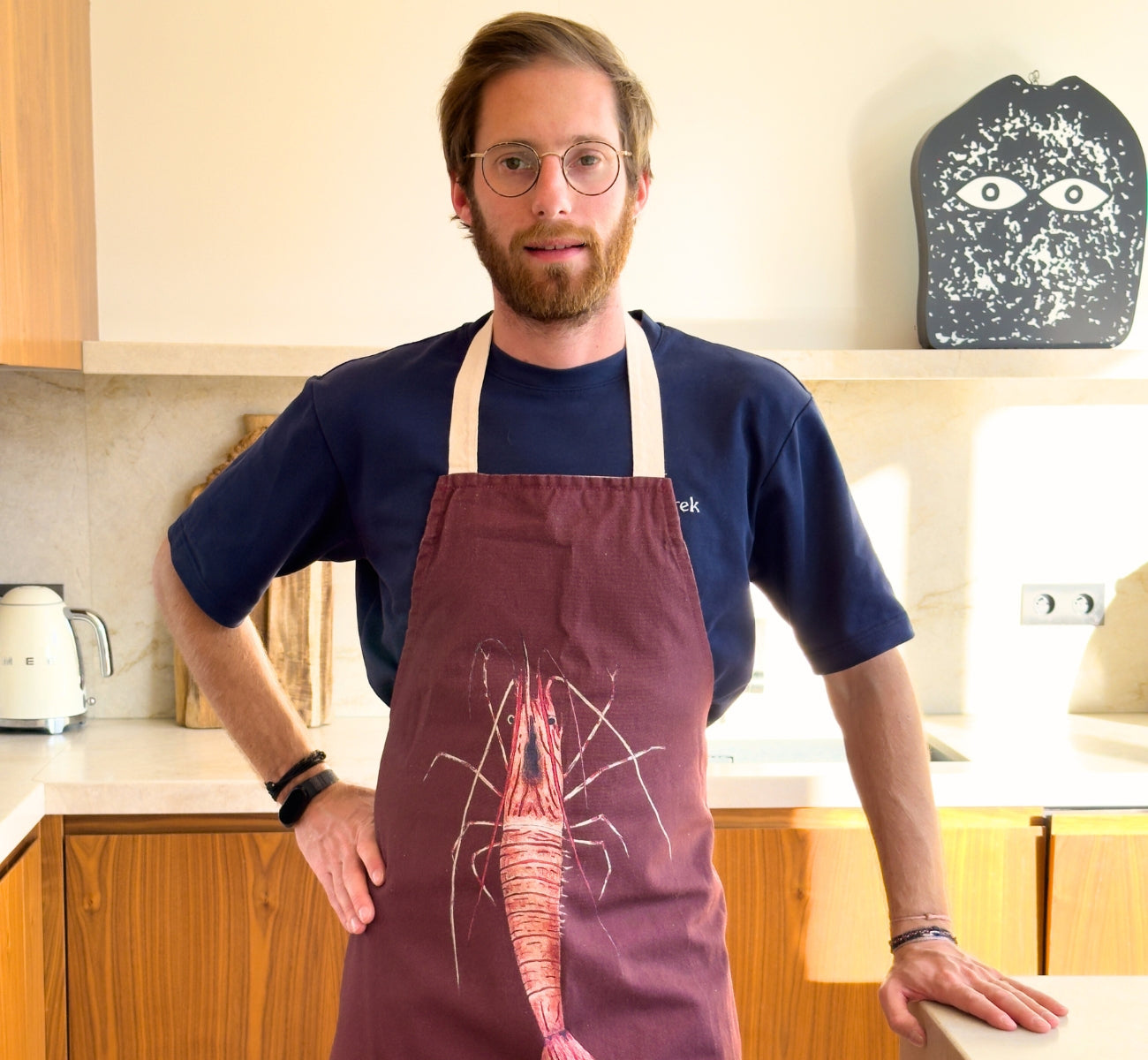 Les Tabliers Varek Illustrations sont confectionnés à la main, en France, dans un atelier provençal. C'est l'alliance parfaite du savoir-faire artisanal et de la passion pour la peinture. Imprimé à même la maille en coton, il est l'allié idéal pour toutes vos préparation culinaires qui sentent bon l'air marin. 100% Coton certifié Oeko - Tex - 210gr/m2 Impression quadrichromie. Confectionné et imprimé en France. Lavable en machine à 60° L'illustration est une reproduction d'une crevette peinte à l'acrylique par Côme, peintre & pêcheur.