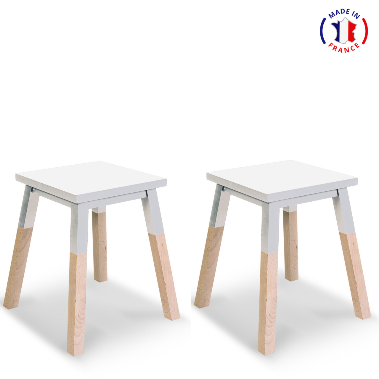 Tabourets en bois carrés ÉGÉE - dessus laqué - lot de 2, 11 couleurs
