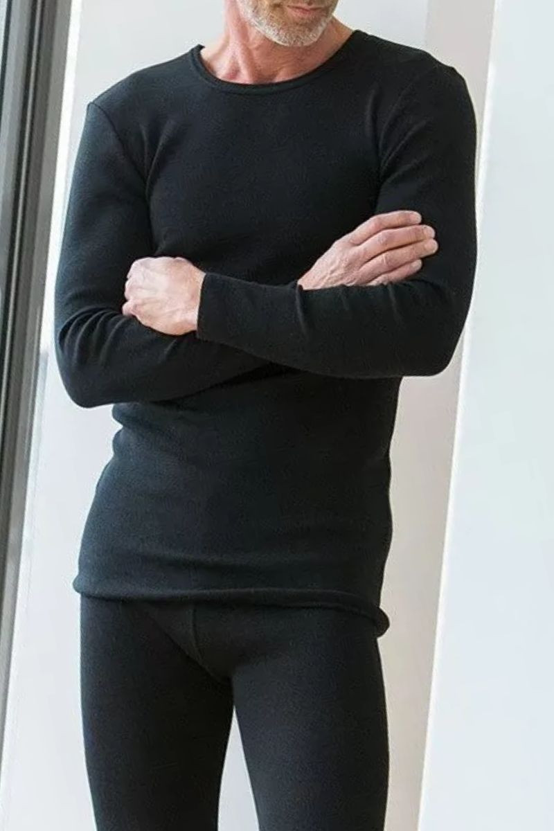 T-shirt manches longues thermique en laine 100 % Laine Mérinos Coupe longue et ajustée Encolure arrondie Chaleur douce