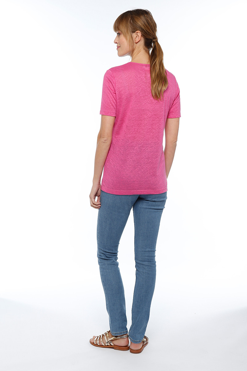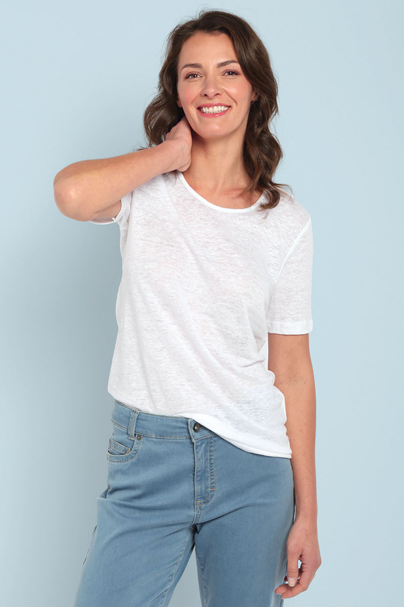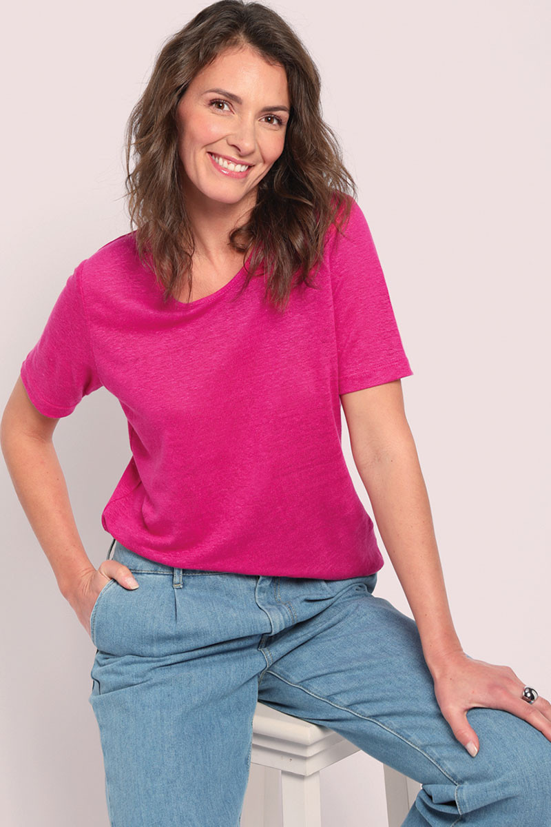 100% LIN. Fabriqué en FRANCE. Tee-shirt femme manches courtes avec une encolure arrondie. Ce tee-shirt est idéal en été.
