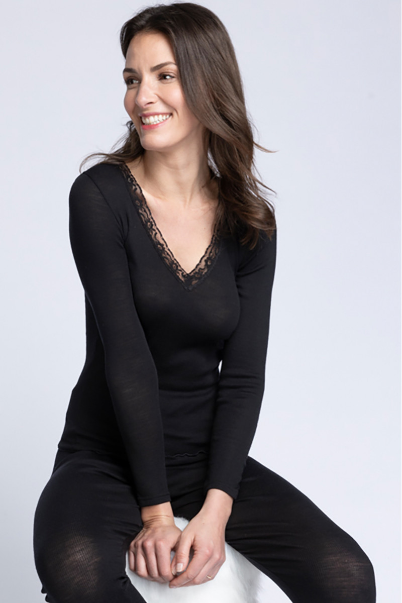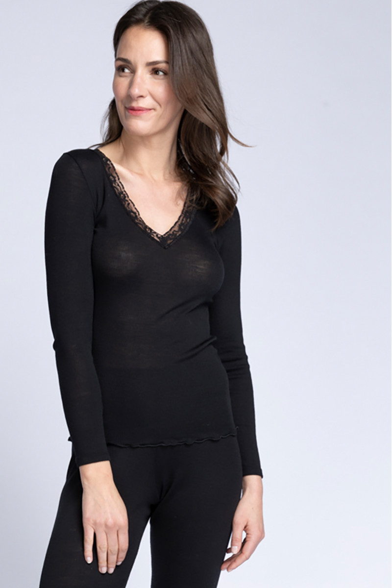 70% LAINE, 30% SOIE. Fabriqué en FRANCE. Tee-shirt en laine et en soie à manches longues