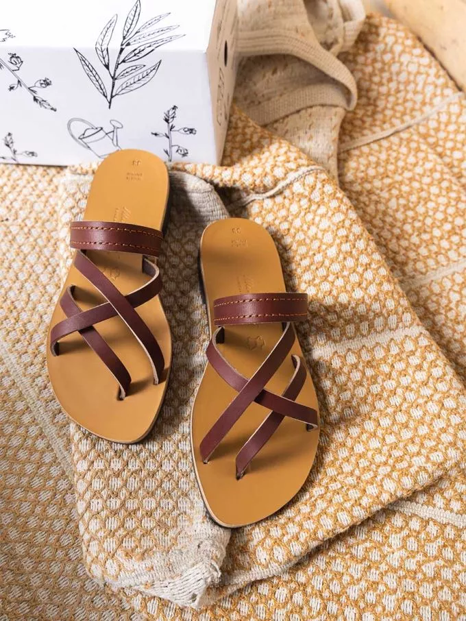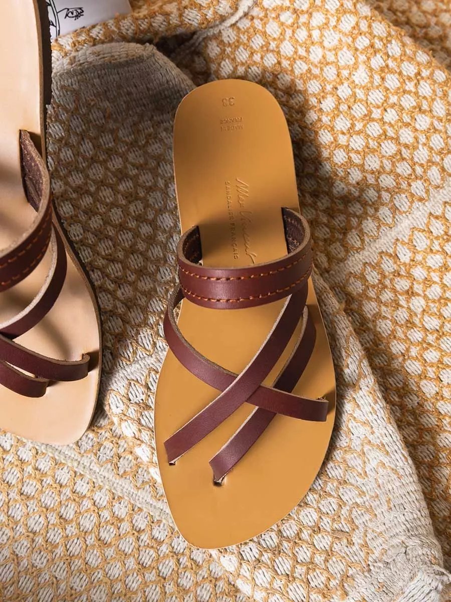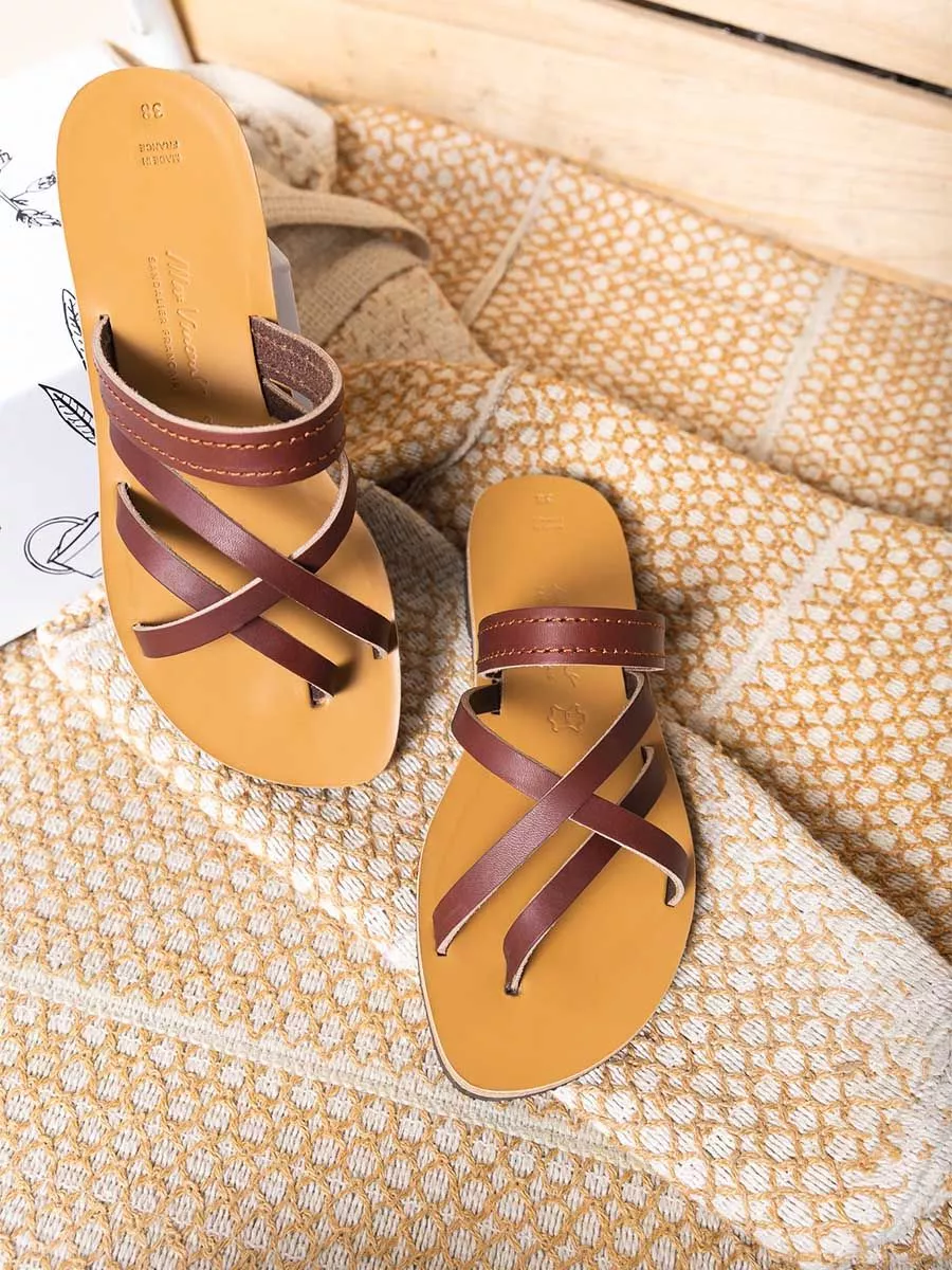 Tongs nomade cuir tannage vegetal marron femme