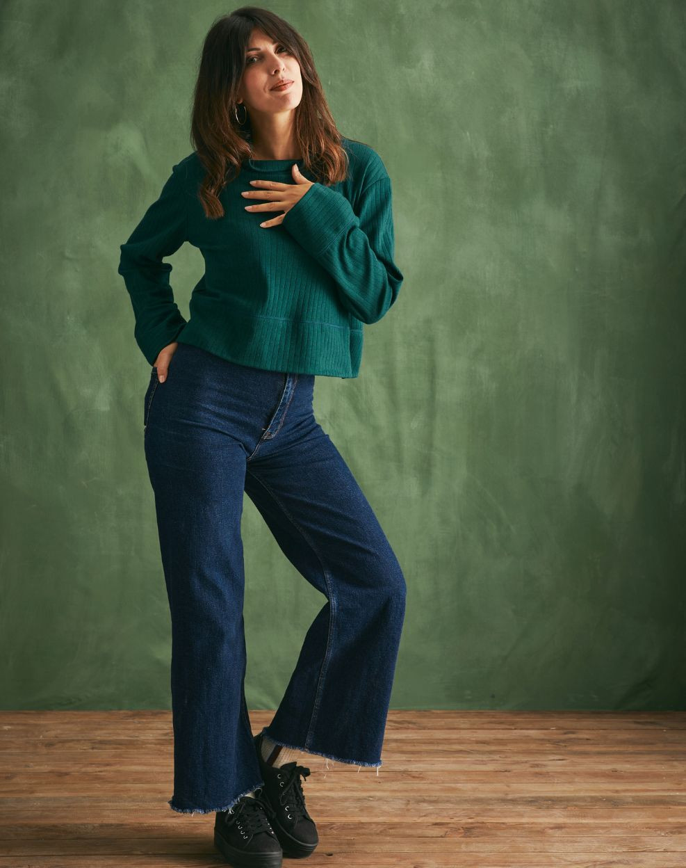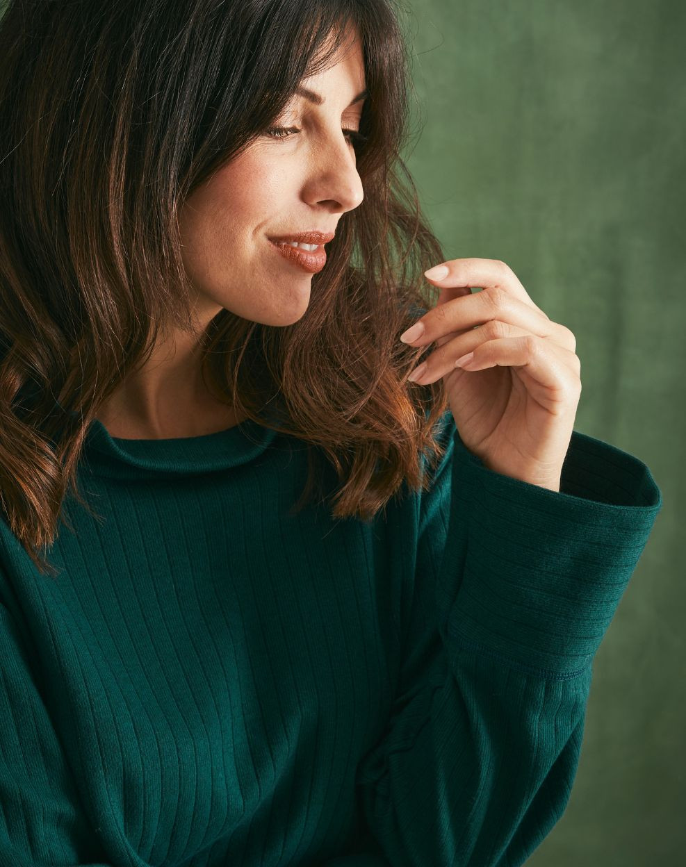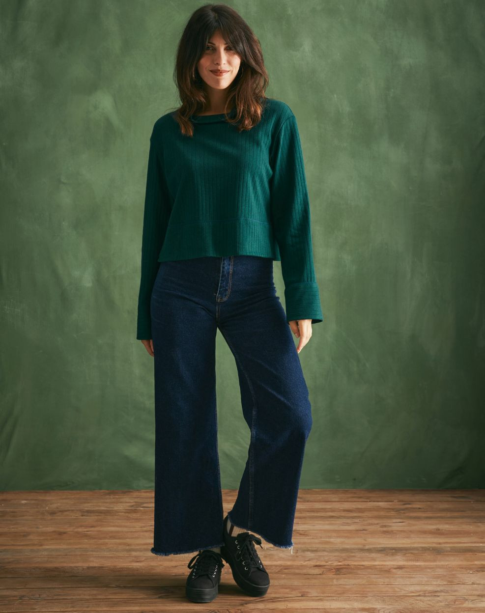 Top laine et coton col montant - Vert cyprès - Femme | Confort absolu en laine et coton !Chaud, doux et réconfortant, ce t-shirt à manches longues sera votre allié idéal à l'approche des premières fraîcheurs. Le col roulé classique est réinterprété avec un col montant offrant une belle tenue, tandis que sa coupe courte met en valeur votre silhouette et s'associe parfaitement avec des pantalons taille haute.