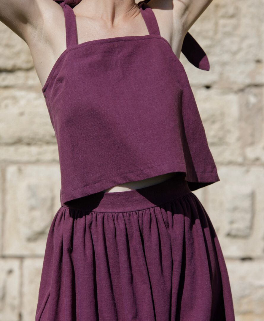 Plumeria, le petit top romantique de cet été ! Pour un effet robe particulièrement élégant, vous pourrez l'associer à notre jupe Apolline, dans le même tissu. On aime ses noeuds sur les épaules, sa coupe évasée / courte & son tissu 100% lin lavé parfait pour cette saison.