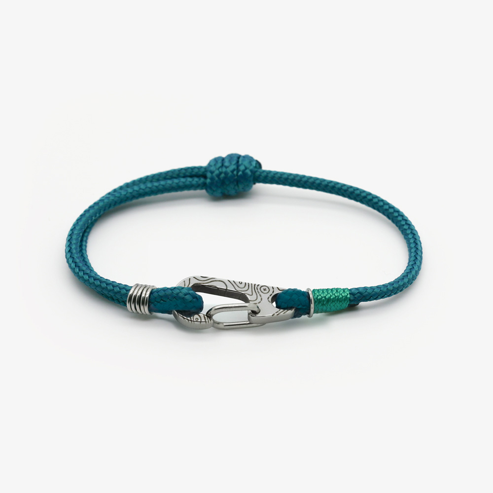 Bracelet pour femme Bracelet réglable grâce à son nœud coulissant Tour de poignet allant de 15cm à 20cm Mousqueton en acier inoxydable de 26mm * 11.5mm * 3mm Paracorde 425 (3mm) : Vert canard Nanoparacorde : Vert menthe Anneaux : Acier inoxydable Topo : Technique de représentation graphique d'un terrain