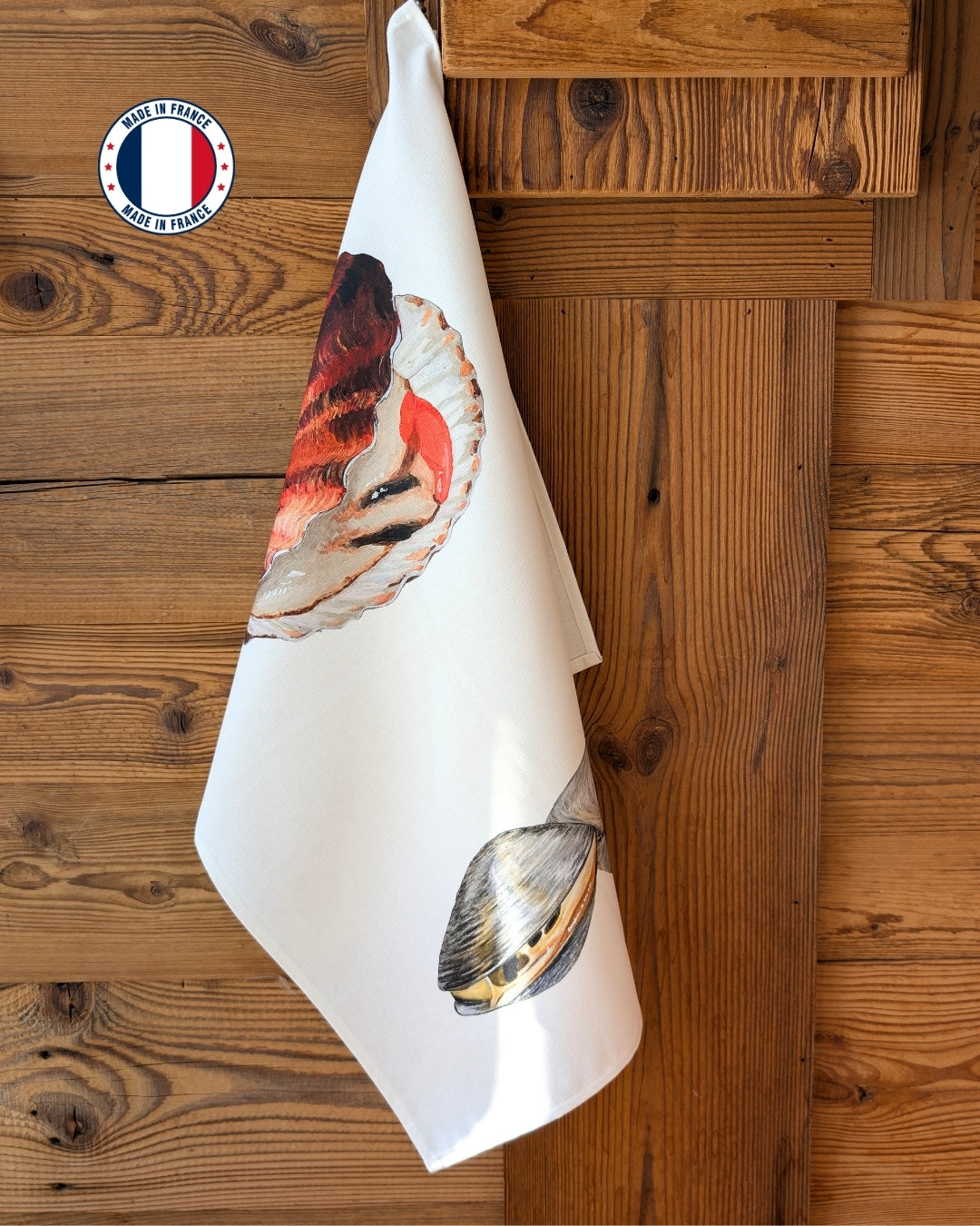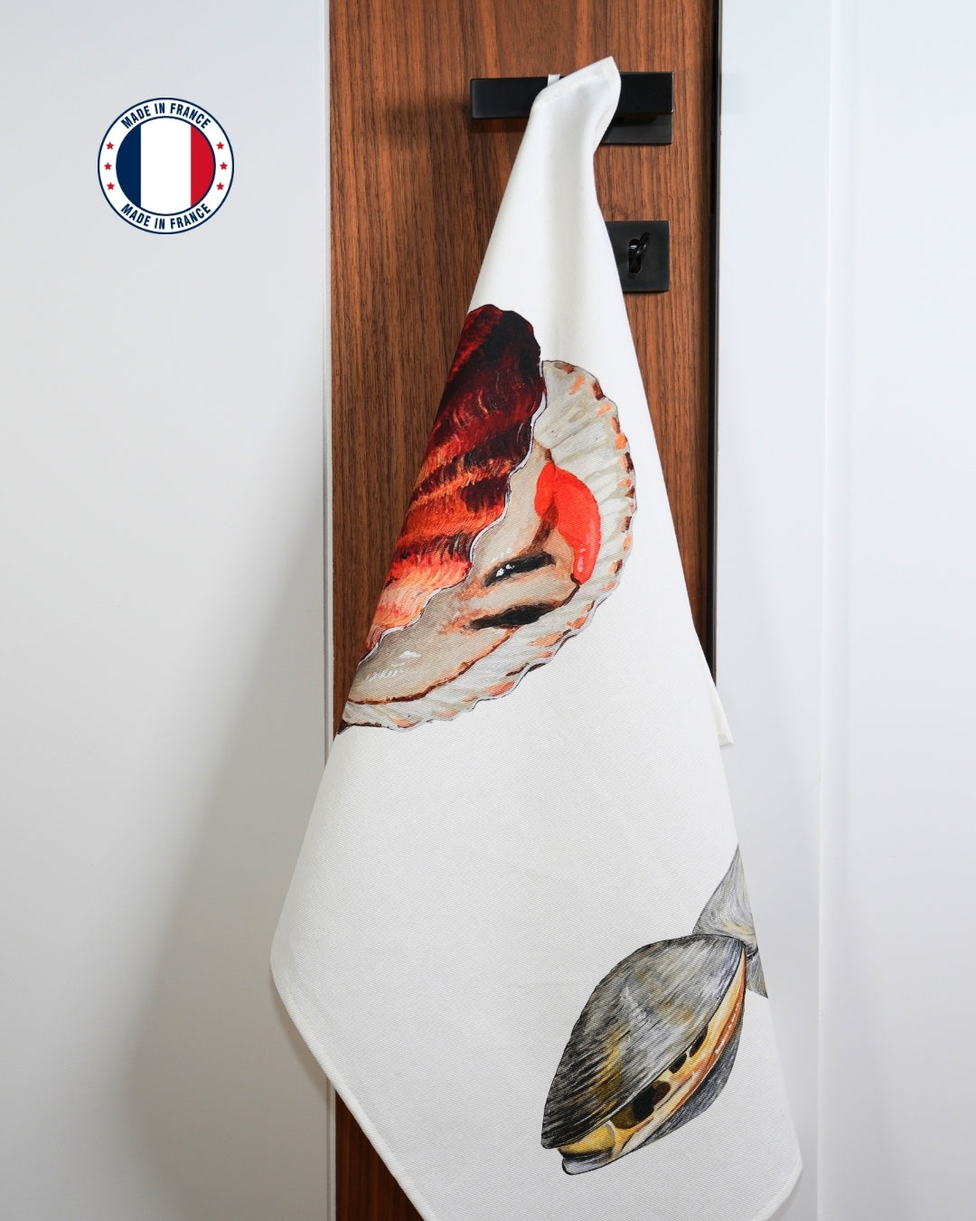 Torchon 100% coton : La Coquille Saint Jacque & La Palourde