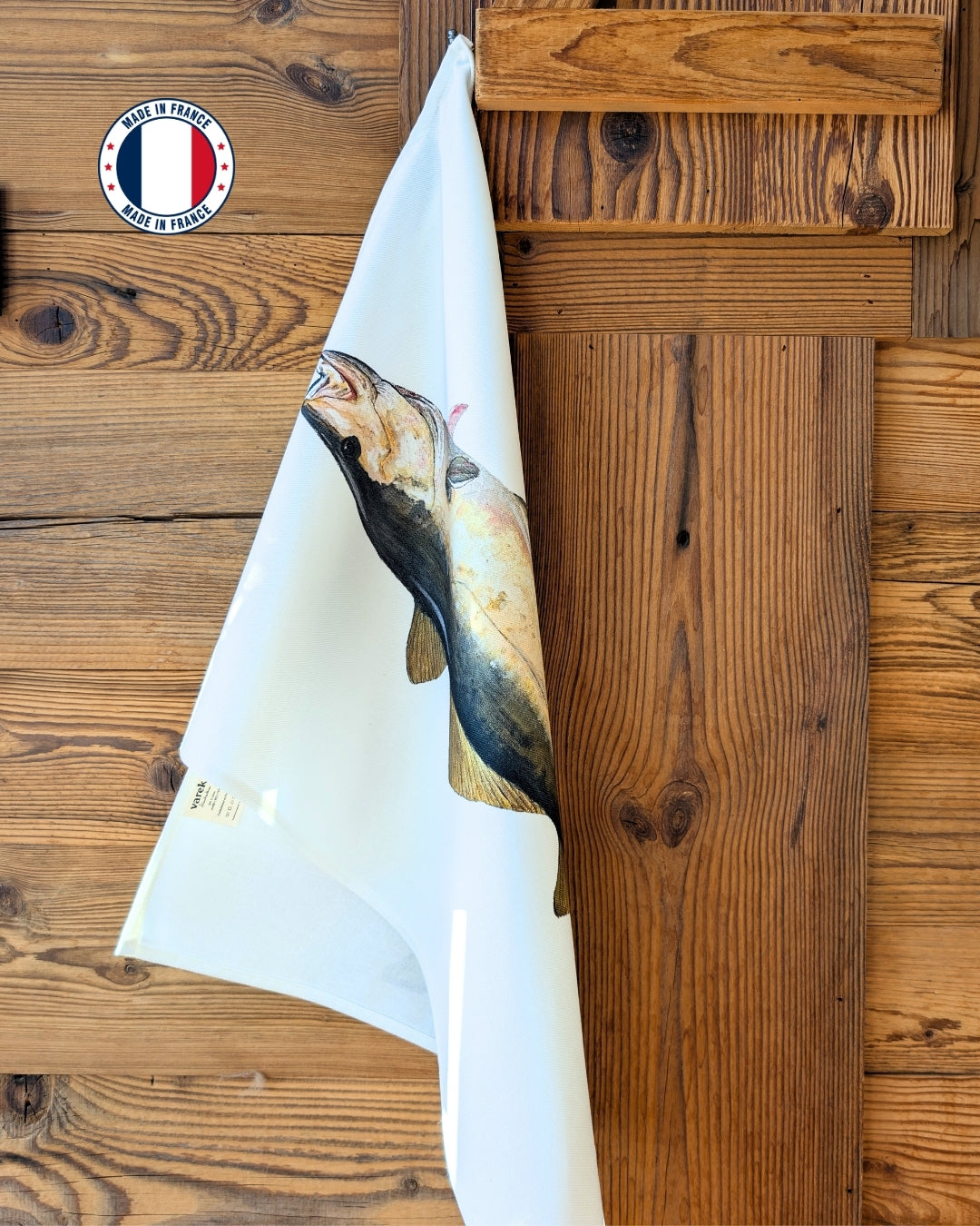 Les Torchons Varek Illustrations sont confectionnés à la main, en France, dans un atelier provençal. Taille : 50 x 70 cm Lavable en machine à 60° 100% Coton certifié Oeko - Tex - 210gr/m2 L'illustration est une reproduction d'un Lieu Jaune peint à l'acrylique par Côme. Comme tous les torchons en coton, afin que celui-ci soit parfaitement absorbant il convient de le tremper quelques heures dans de l'eau froide avant de le passer au lavage. Suite à son premier lavage, votre torchon Varek Illustrations sera votre meilleur allié dans votre cuisine. Un petit mot sur le poisson Le Lieu Jaune est un poisson que l'on retrouve de l'Atlantique nord jusque dans les fjords Norvégiens. Doté d'une chaire délicieuse, on le pêche beaucoup en France, au-dessus des épaves qui jonchent le littoral.