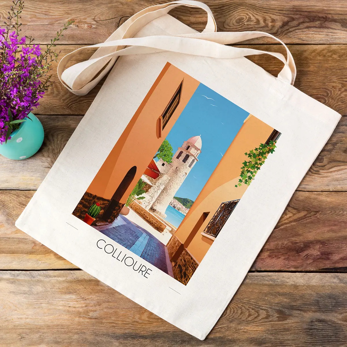 Apportez une touche du Sud à vos journées avec le Tote Bag Collioure Clocher, pratique, poétique et éco-responsable. Fabriqué en coton 100% naturel certifié Oeko-Tex, il vous accompagne dans tous vos déplacements.L’illustration exclusive @Foliove rend hommage au clocher emblématique de Collioure, symbole de lumière et de douceur méditerranéenne. Idéal en sac de plage, de marché ou du quotidien.