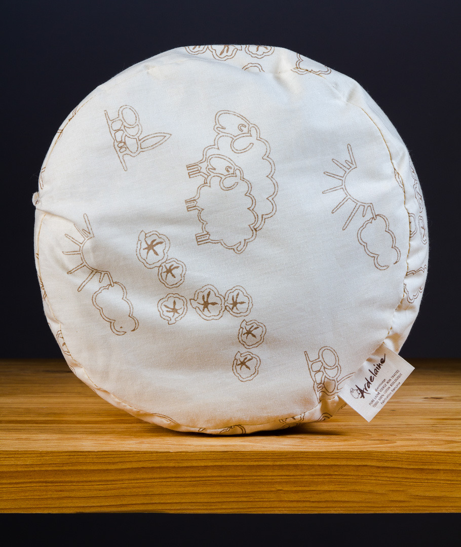 En forme de cylindre de 22cm de diamètre. Épais et ferme, il est entièrement composé de nappe de laine.
