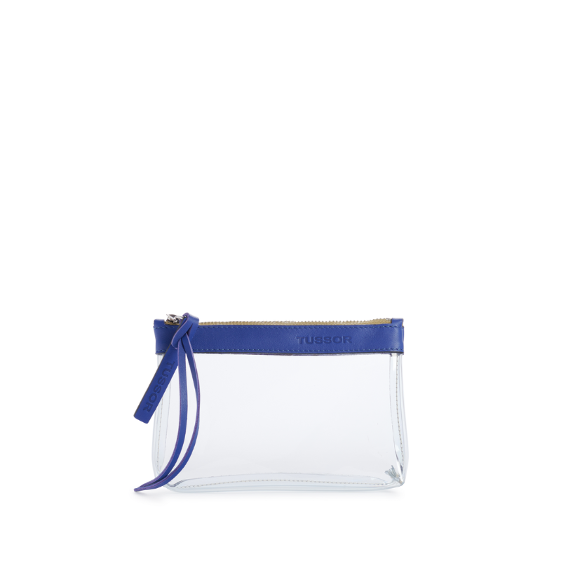Trousse PVC et cuir Bleu cobalt Small