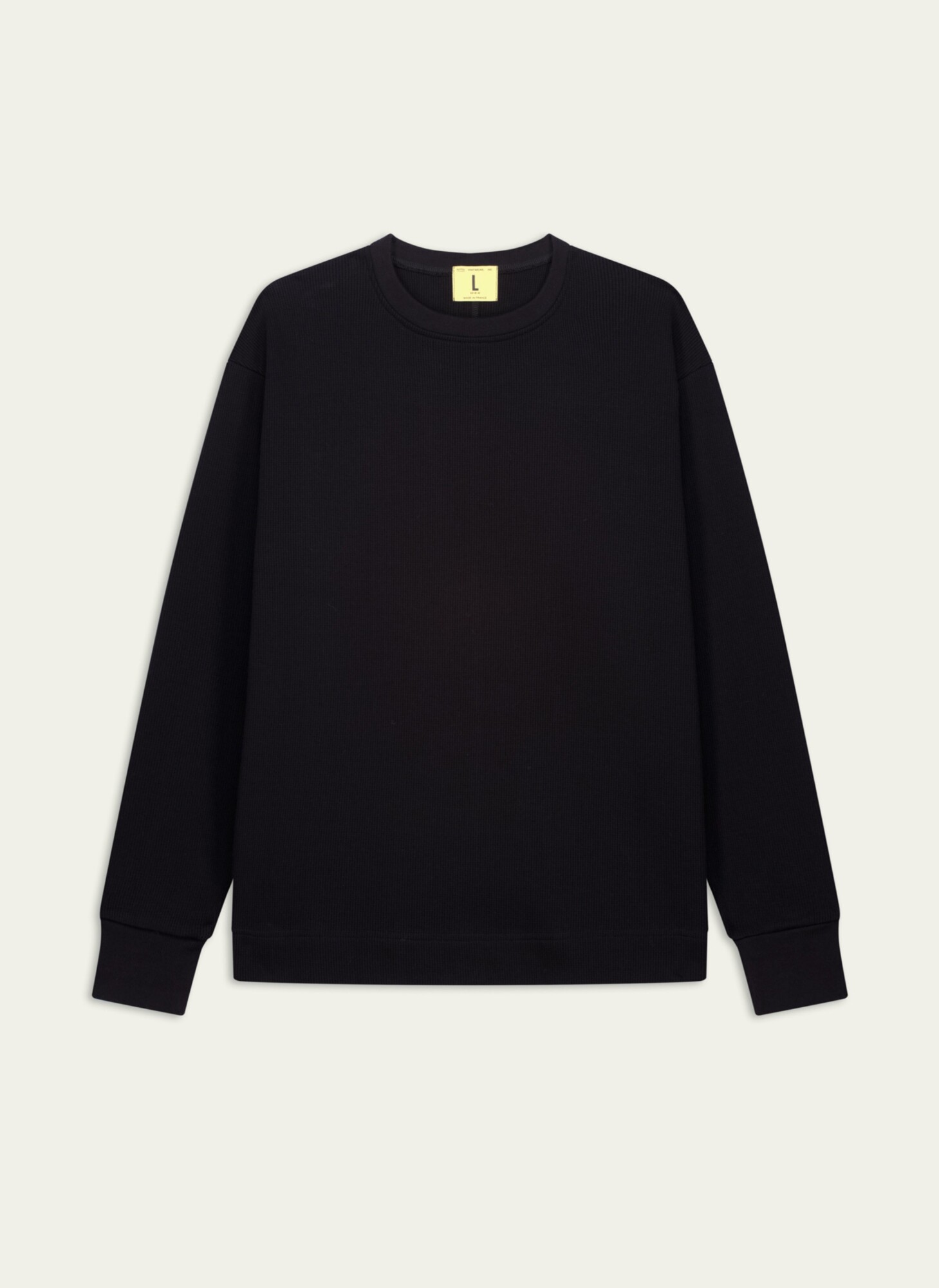 Le modèle Vahé c’est vraiment que pour le style. Ce n’est ni un sweat, ni un pull, ni un simple t-shirt : c’est une pièce hybride conçue avant tout pour son caractère et son originalité. Sa maille serrée lui confère une grande robustesse et une belle tenue dans le temps. La coupe relax a été pensée pour tomber naturellement sur le corps, sans effet ajusté ni volume excessif. Dans sa version manches longues, le Vahé reprend les codes visuels du sweat tout en bénéficiant du confort du tricot. Réalisé sur machine circulaire jauge 14, son point proche d’une maille gaufrée crée un relief subtil et agréable au toucher. Le fil est tricoté en panneaux dans un atelier spécialisé à Troyes. La machine utilisée ne permettant pas d’obtenir une largeur complète, le dos est coupé puis assemblé par une couture centrale, devenue un élément esthétique à part entière. Matière : 100% coton peigné Tricotage : maille gaufrée en jauge 14, serrée et texturée Couture américaine tout le long du dos Toucher : doux et confortable Poids : 650 grammes en taille L