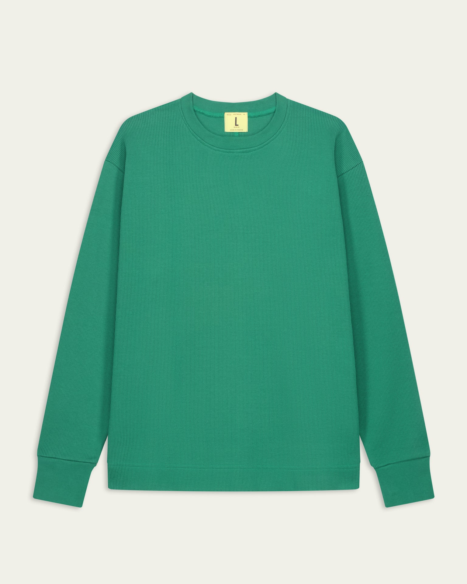 Le modèle Vahé à manches longues reprend l’allure d’un sweat, avec le confort et la souplesse du tricot. Son tricotage en maille gaufrée, en jauge 14, offre une texture subtile et une maille serrée, garantissant une belle tenue et une grande douceur au porté. Sa coupe droite et son toucher moelleux en font une pièce idéale pour un style décontracté et élégant. Comme sur la version manches courtes, une couture américaine traverse le dos, ajoutant du caractère et une finition soignée. Matière : 100% coton peigné Tricotage : maille gaufrée en jauge 14, serrée et texturée Couture américaine tout le long du dos Toucher : doux et confortable Poids : 650 grammes
