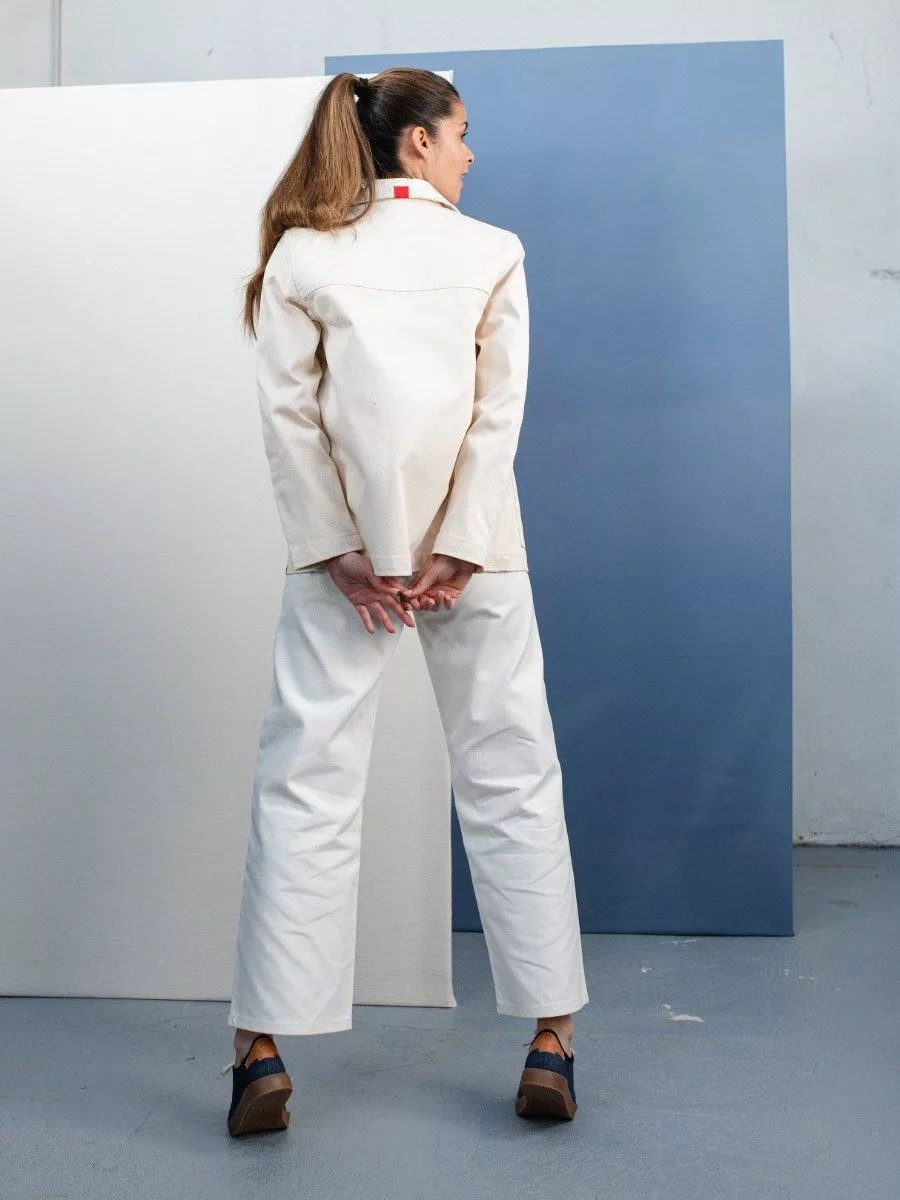 LA VESTE DENIM ECRU POUR FEMME Avec cette veste en jean écru pour femme, le modèle 603, nous vous proposons un vêtement résistant, conçu en France et qui vous accompagnera longtemps. Sa couleur blanche s'associe facilement à toutes vos tenues.