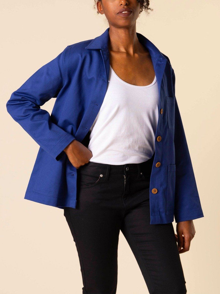 LA VESTE DE TRAVAIL BLEU OUVRIER POUR FEMME Le charme du vêtement de travail et la fabrication française retrouvée ! Avec cette veste 603 pour femme, nous vous proposons un vêtement durable, fabriqué en France et que vous allez porter longtemps. Son coloris bleu ouvrier s’inspire des bleus de travail portés à l’origine dans les usines.