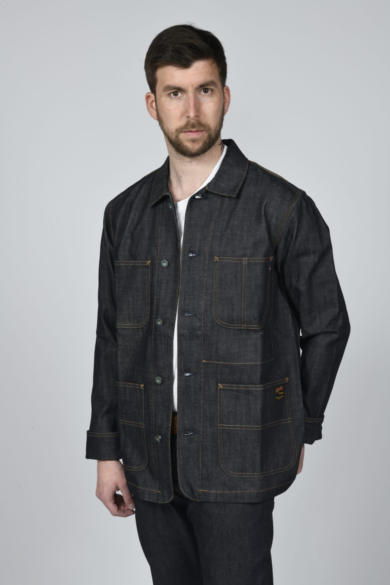 La veste des ouvriers Américains en denim.Confectionné en France en :Jeans brut - 100% Coton 415Gr/m².Détails :