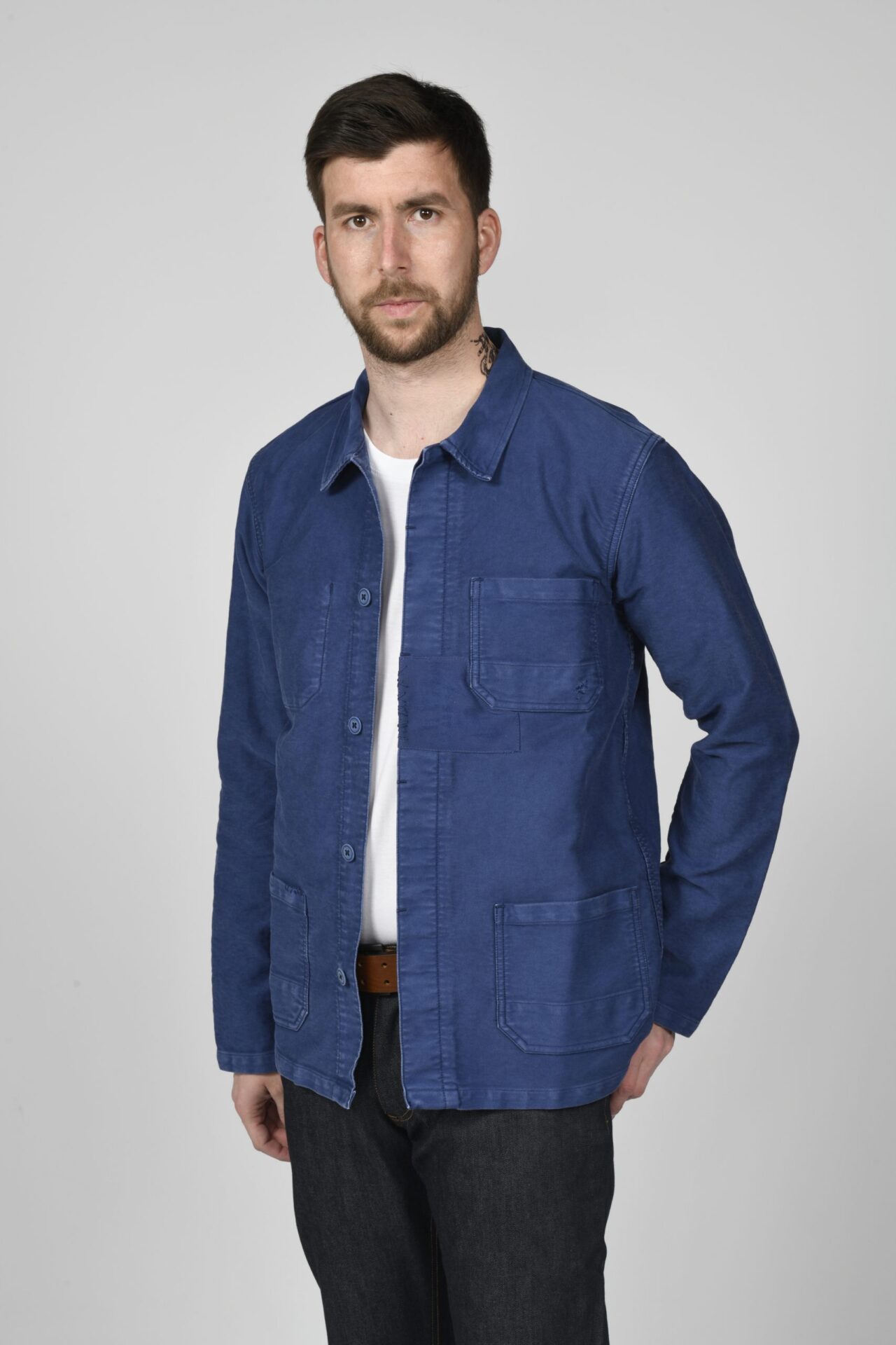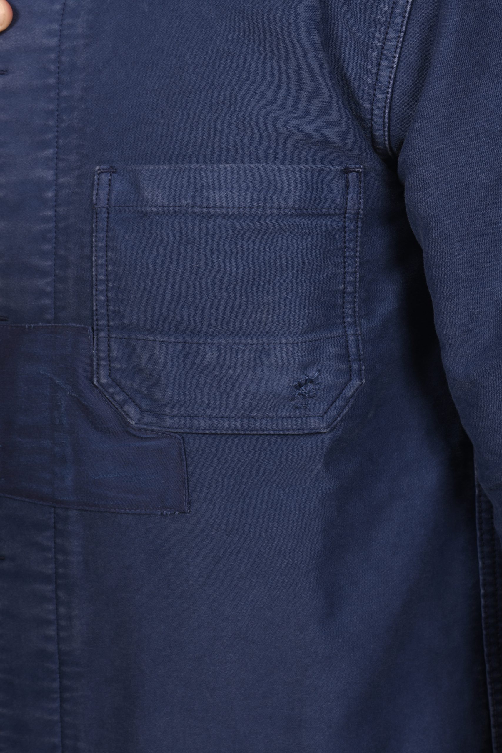 Veste de travail authentique en Moleskine basée sur les vêtements de travail des années 1920. Portée depuis des décennies, elle fera le bonheur des nostalgiques du passé. Le coloris bleu est la référence du « bleu de travail » des ouvriers de l’époque.Confectionné en France en :Moleskine 100% - Coton 390Gr/m².Détails :