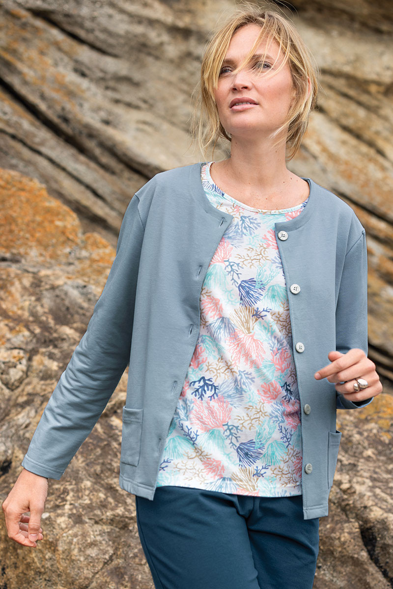92% COTON, 8% ELASTHANE. Fabriqué en FRANCE. Veste en molleton printemps, été.